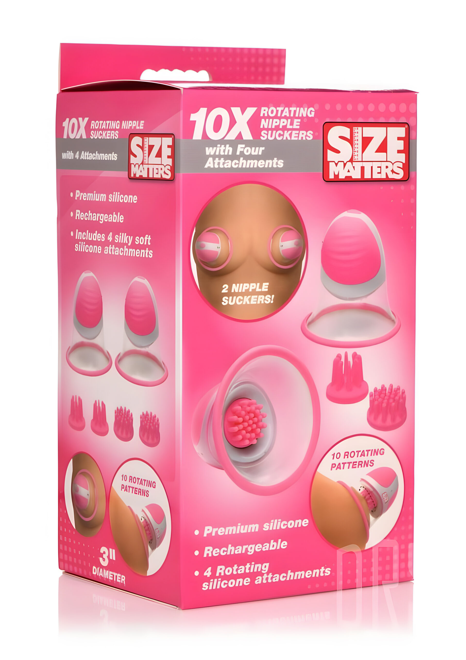 Dare to step into a realm where nipple play gets an avant-garde twist. Meet the 10X Rotating Silicone Nipple Suckers, a cheeky little pair designed for those who think vanilla is just an ice cream flavor. For the explorers of nipple delights, or the ones with an ever-present craving for that “constant caress,” these rotating buddies have got your back… or should I say, front? Engineered with meticulous care, they feature a touch of plush silicone that smoothly skates over your skin. And yes, they’re hands-free, because why should your hands be occupied when there’s so much more to explore? But here’s where the plot thickens. With a button’s press, unleash the whirlwind of sensations as these spinners twirl over your sensitive bits. Feeling adventurous? Try the two distinct attachments. Whether you’re in the mood for some side-tingling, areola-whirling experiences or direct top-notch nipple tickles, the choice is yours. And switching between them? It’s a breeze – just a wiggle, a pop, and you’re ready to swap! Water adventures? Splish-splash! They’re all about that splash life. Though, like Gremlins, they’re not fans of complete submersion, so no diving escapades, please. And when the energy runs low, simply plug in the provided USB charger, and they’ll be up and running in no time. Now, while countless studies (and, let’s be honest, personal experiences) claim that nipple stimulation is the bee’s knees, sometimes your hands want to wander elsewhere. That’s where our trusty suckers come in. Imagine the tantalizing touch of these devices paired with a bit of vibration, some toe-curling penetration, or even a dash of oral magic. The crescendo of pleasure might just leave you speechless. Application? It’s simpler than tying a shoelace. Squeeze, place, release, and voila! The world of rotating wonders is at your fingertips, or should I say, your nipple-tips? Whether you’re treating yourself on a quiet evening or adding some sizzle to partner play, these pink darlings promise sensations you’ll reminisce for days. In conclusion, for a sensation that goes beyond the norm, look no further than these pink wonders. Because why settle for regular when you can have a rotating fiesta? And remember, always keep it slippery with some water-based lubricants. After all, every great ride is smoother with a little lubrication. Safe travels on your journey to the peaks of pleasure! Hands-free design: Enjoy the freedom to explore other pleasures while these suckers do their magic. Plush silicone: Smooth and gentle on your skin for a luxurious feel. Two distinct attachments: Switch between side-tingling and direct nipple tickles with ease. Water-resistant: Perfect for splashy fun, but avoid full submersion. USB rechargeable: Convenient and eco-friendly charging for endless pleasure. Easy application: Squeeze, place, release, and enjoy the rotating sensations. Enhance your experience: Pair with vibrations, penetration, or oral play for an unforgettable experience.