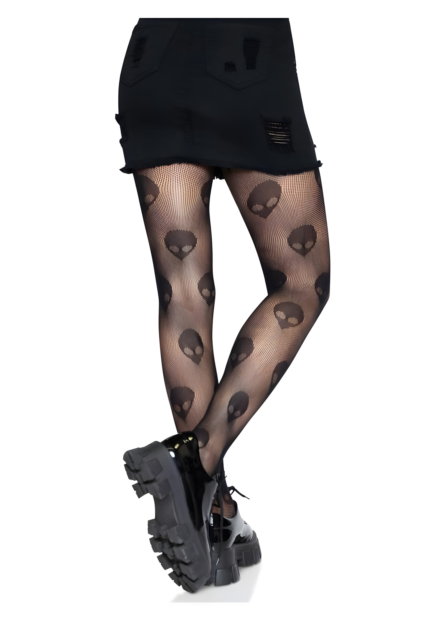 Beam up to these ultra-cute alien net tights by Leg Avenue. These out-of-this-world fishnets, featuring a woven alien head pattern, are perfect for rave outfits, festival clothing, Halloween costumes, or just adding a touch of fun to your everyday wardrobe. Whether you’re aiming to stand out at a music festival or simply want to add a quirky twist to your daily attire, these tights are your go-to accessory. Package includes: 1 PC Crafted from high-quality hosiery fabric, these tights are designed for long-lasting wear. The breathable fishnet material ensures comfort, while the ultra-soft and stretchy fabric provides a snug yet flexible fit. The intricately woven alien head pattern adds a unique touch, making these tights a conversation starter wherever you go. Transitioning from day to night looks has never been easier. Pair these tights with a casual dress for a daytime outing, and then switch to a more daring ensemble for the evening. The fun pattern allows you to create cute Halloween costume looks without much effort. Simply add a few accessories, and you’re ready to impress. For those who love to express their individuality, these tights are a must-have. They offer a playful yet stylish option for those who dare to be different. The black color ensures versatility, allowing you to pair them with a variety of outfits. Whether you’re dressing up for a special occasion or just want to add a pop of personality to your look, these tights have got you covered. Maintaining these tights is a breeze. Simply hand wash them in cold water, avoid using bleach, and let them drip dry. This ensures that they remain in top condition, ready for your next adventure. Color: Black One size fits most Height: 4’11” – 5’9″ Weight: 90-165 lbs These tights are not just a fashion statement; they’re a way to express your unique style. Whether you’re attending a rave, heading to a festival, or just want to add a bit of fun to your everyday outfit, these alien net tights are the perfect choice. Embrace your inner extraterrestrial and let your style shine. Leg Avenue’s alien net tights are a versatile and fun addition to any wardrobe. With their high-quality fabric, breathable design, and unique pattern, they offer both comfort and style. So why not add a touch of the extraordinary to your life? After all, who says fashion can’t be out of this world?