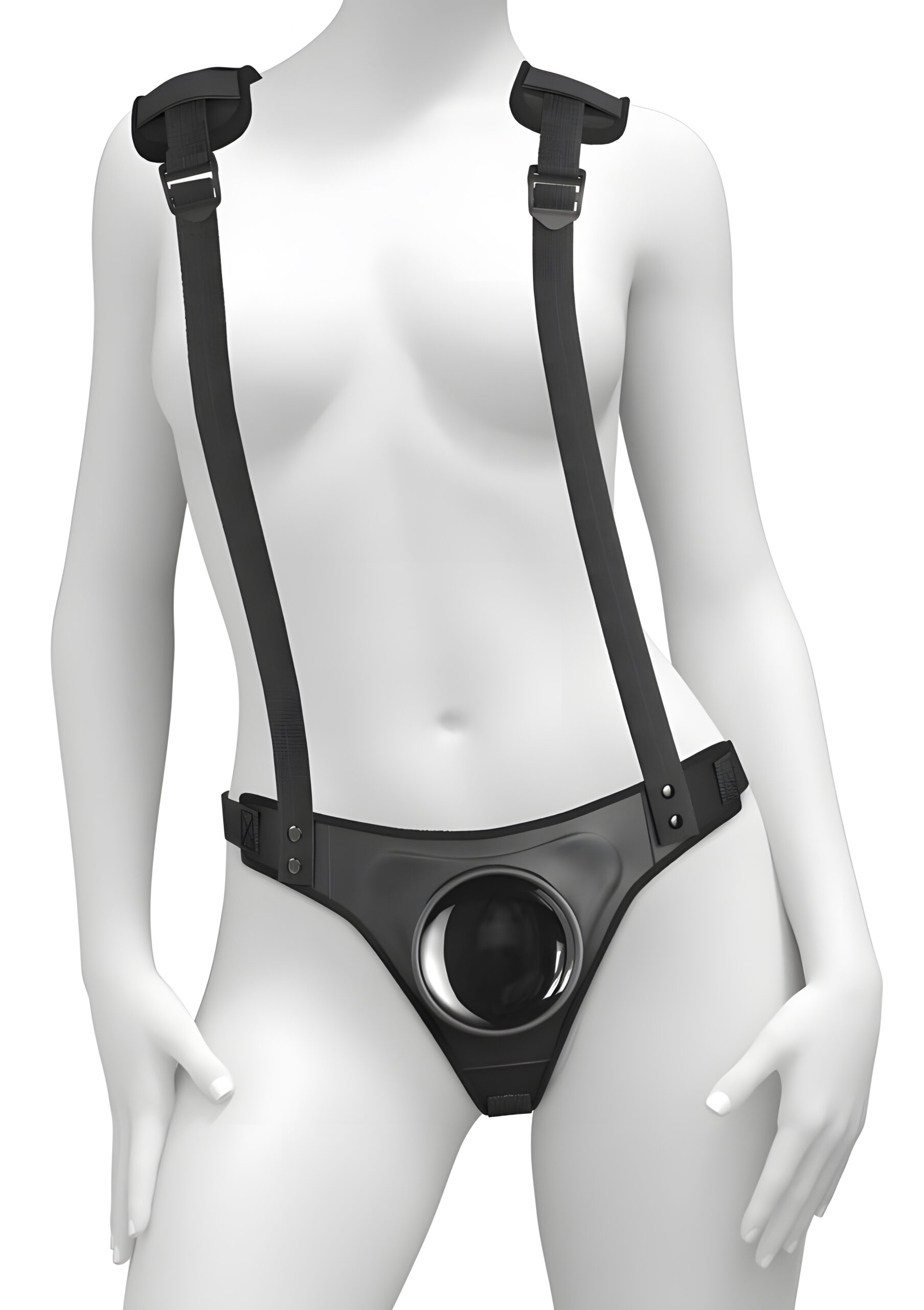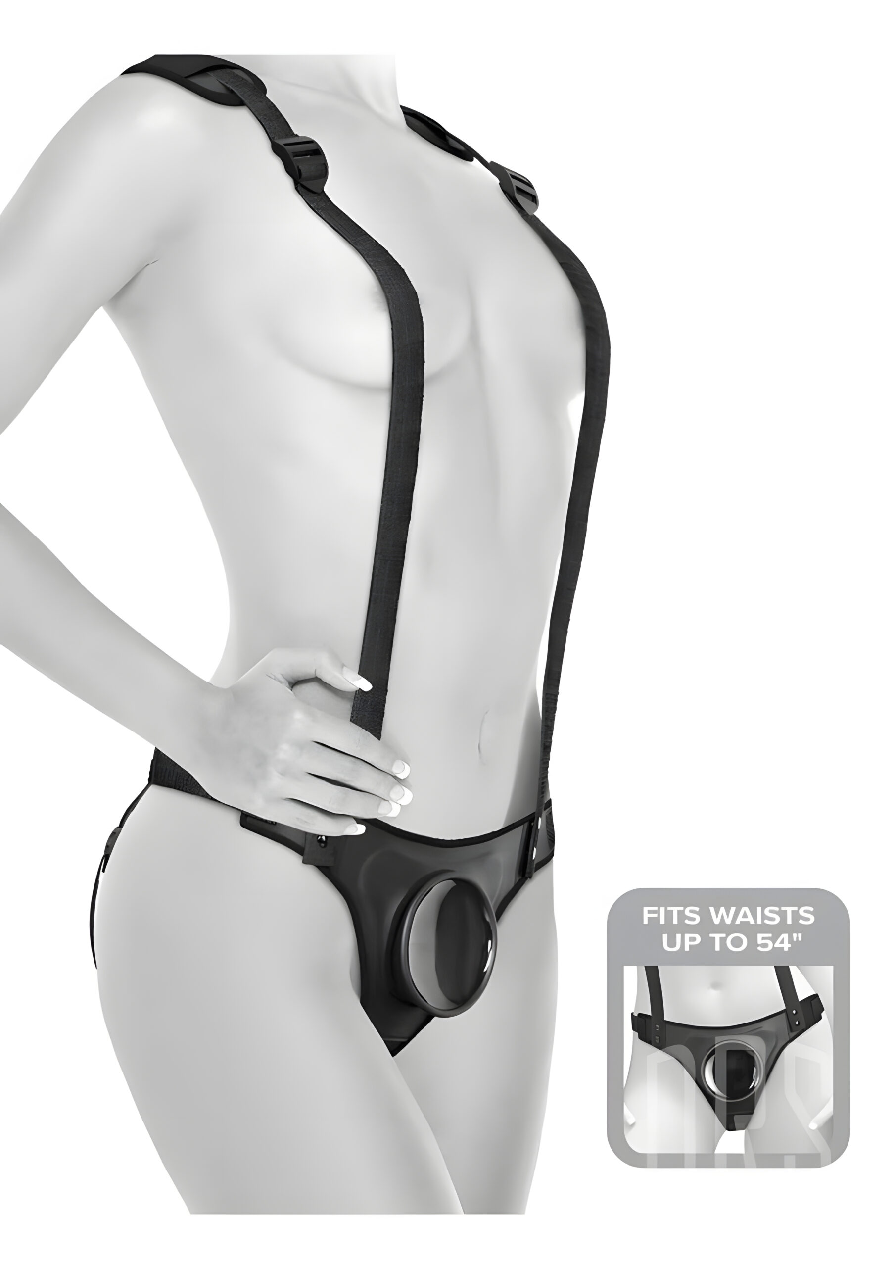 Introducing the Body Dock Strap-On Suspenders, your sleek solution to all your strap-on play hassles. With a patented push-and-play suction design, we’ve taken away the fuss to ensure you can focus on what really matters: having a great time. The Body Dock is the easiest strap-on harness system on the market. No rings. No snaps. All you need to do is simply press the suction cup of your favorite dildo or vibrator against the concave suction dock, wait for the air to release, and voila! A super-strong bond is formed that holds tight even when the action heats up. One major downfall of traditional harnesses is the sagging caused by gravity – but not with the Body Dock. The angled suction dock helps keep your attached dildo erect, giving you a more realistic and satisfying experience. But it’s not all about performance; the Body Dock is also about comfort. The padded form-fitted silicone body plate, detachable suspenders, adjustable side-release buckles, and removable shoulder pads conform to your body’s curves for a secure and comfortable fit. Have a favorite dildo you already own? No problem. The Body Dock is designed to accommodate most dildos with a suction cup diameter of 3.4 inches or smaller. Plus, the heavy-duty nylon straps easily adjust to fit most waist sizes, up to 54 inches. When the fun is done, detaching your dildo or vibrator is as easy as lifting the edge of the suction cup. And caring for your Body Dock is a breeze – just spot clean with a mild detergent and warm water, then hang to dry. Please note that the Body Dock is not recommended for use in the bath or shower, and for best results, always attach your accessories to the Body Dock before applying any lubricant. If you get lubricant on the Body Dock and/or the bottom of the suction cup, simply clean it with a mild detergent or antibacterial cleaner and warm water, then dry. So why settle for less when you can have the best? The Body Dock Strap-On Suspenders offer an unparalleled strap-on experience, providing both comfort and performance in one sleek package. Whether you’re a strap-on novice or a seasoned veteran, the Body Dock is your ticket to a whole new level of pleasure. No rings. No snaps. No hassle. Just push, play, and enjoy the ride.