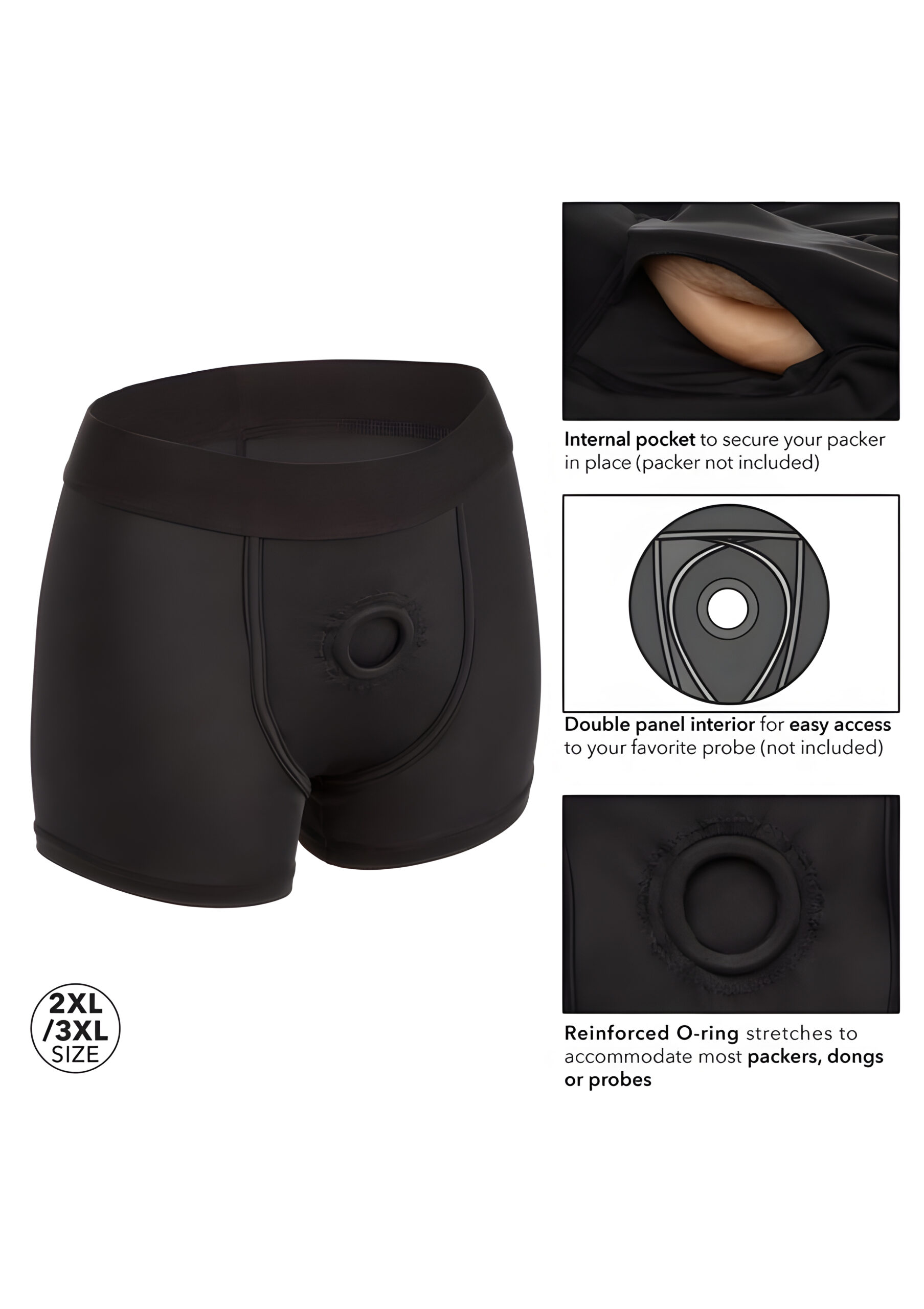 Experience the perfect combination of comfort and performance with the Boundless Boxer Brief Harness. Designed with powerful functionality and wearer’s comfort in mind, this harness is tailored for 2XL/3XL sizes, offering an exceptional fit and support. The Boundless Boxer Brief Harness features an extra-wide waistband that provides superior support, ensuring a secure and comfortable fit for sizes 2XL to 3XL. Crafted from soft stretchy material, this harness conforms to your body, offering a personalized and enjoyable experience. The internal probe straps further enhance the support, keeping your favorite probe in place during even the most passionate moments. With its accommodating double panel interior design, this harness allows for easy access to your favorite probe. Whether you prefer a packer, vibrator, or dildo, the durable reinforced O-ring stretches to accommodate various attachments, ensuring a perfect fit and worry-free play. Whether you are a beginner or an experienced user, the Boundless Boxer Brief Harness guarantees frustration-free pleasure. Simply secure your favorite probe, slip into the extra stretchy waist and thigh straps, and indulge in passionate penetration or enjoy comfortable all-day wear. When you’re done, the harness is easily cleaned by machine washing and hanging to dry, making maintenance a breeze. The Boundless Boxer Brief Harness is presented in a sleek and versatile black color, exuding elegance and style. Its design caters specifically to 2XL/3XL sizes, providing a secure and comfortable fit for a wide range of body types. Experience the ultimate blend of comfort and performance with the Boundless Boxer Brief Harness. Whether you’re exploring your desires alone or with a partner, this harness will exceed your expectations. Embrace pleasure with confidence, knowing that you have the support and comfort of a high-quality harness designed for 2XL/3XL sizes.
