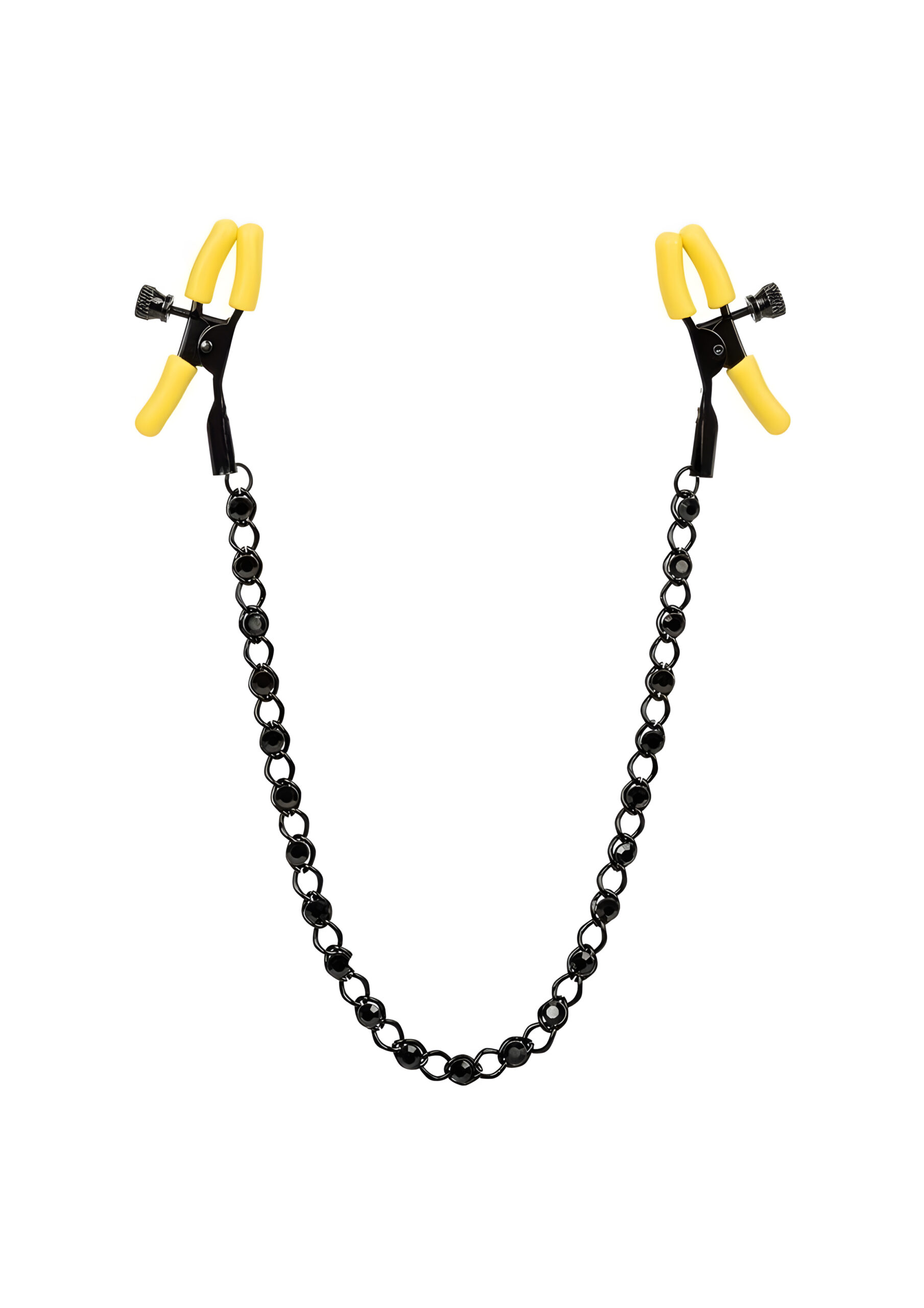 Elevate your sensory experiences with the Boundless Nipple Teasers, a delightful blend of gentle allure and stimulating precision. Whether you’re a curious beginner or a seasoned enthusiast, these nipple teasers promise to take you on a journey into the realm of heightened sensations and pleasure. Each clamp is fully adjustable, allowing you to find just the right level of sensation. The soft, comfortable pads ensure a pleasurable and thrilling experience, making them suitable for anyone looking to explore new dimensions of sensory play. The teasers are accentuated by a sturdy, high-quality chain with a crystal inlay, adding a touch of elegance and sensuality to your experience. It’s like wearing a tuxedo to a party, but for your nipples. Made from non-tarnishing, nickel-free materials, the Boundless Nipple Teasers ensure durability and comfort for your skin. You won’t have to worry about any unwanted reactions, except perhaps the ones you’re hoping to elicit from your partner. The nickel-free iron used in the chain and clamps is both robust and gentle, while the silicone pads provide a soft cushion for your delicate areas. The silica crystals add a bit of sparkle, because who doesn’t like a little bling with their kink? Let’s talk measurements, because size does matter. Each clamp measures 2.25 inches (5.75 cm), which is just the right size to provide a firm yet comfortable grip. The chain, at 12 inches (30.5 cm), is long enough to drape elegantly, adding a visual element to the tactile experience. Weighing in at just 1.1 ounces, these teasers are lightweight enough to wear comfortably, yet substantial enough to remind you of their presence. Now, let’s dive into some usage suggestions. First, ensure that the clamps are adjusted to your desired level of tension. You want them to be snug, but not so tight that they cause discomfort. Remember, this is about pleasure, not pain. Once you’ve got them in place, take a moment to admire the way the chain and crystals catch the light. It’s like having your own personal disco ball, but without the cheesy music. For those new to nipple play, start with short sessions to allow your body to acclimate to the new sensations. You can gradually increase the duration as you become more comfortable. For the more experienced, try incorporating the teasers into your usual routine. They pair well with other sensory toys, creating a symphony of sensations that will leave you breathless. The Boundless Nipple Teasers are an essential addition to any collection. They offer a unique blend of elegance, comfort, and stimulation, making them a versatile tool for exploring new realms of pleasure. With their adjustable design, high-quality materials, and eye-catching aesthetics, these teasers are sure to become a favorite in your repertoire. So go ahead, indulge in a little luxury and let the Boundless Nipple Teasers take you on a journey of discovery. SKU: SE-2702-01-2 Color: Black Warranty: 1 Year Warranty Features: Wearable, Phthalate Free, Adjustable Material Type: Nickel-Free Iron (chain, clamps), Silicone (pads), Silica (crystals) Measurements: 2.25 in/5.75 cm (each clamp), 12 in/30.5 cm (chain) Weight: 1.1 oz