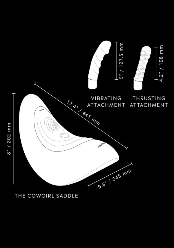 Equipped with 2 interchangeable attachments, each uniquely shaped to provide distinct sensations, the Cowgirl Saddle invites exploration and creativity. The customizable vibrations correspond to various movements, from gentle sways to invigorating thrusts, ensuring that every session is tailored to individual desires.