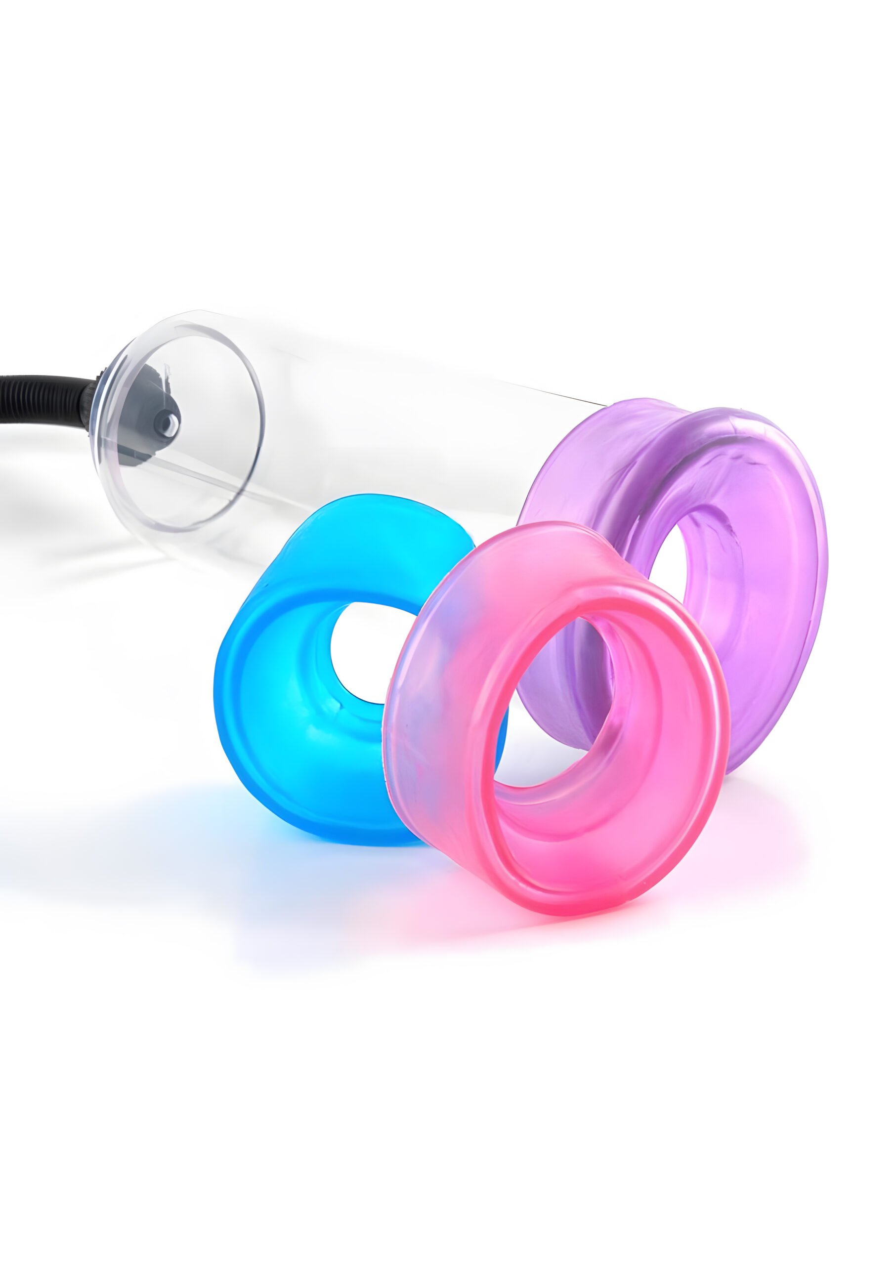The Cock Trainer Pump System is the perfect way to increase your size and confidence without dangerous medications or expensive surgeries. With each pull of the Sure-Grip pump trigger, your pleasure rod will grow bigger, thicker, and swell with power. Once you penetrate the smooth, flexible PVC opening, you’ll quickly discover throbbing, rock-hard erections that last and last, with no midway performance letdowns. The clear vacuum tube allows you to watch your cock grow, and the quick-release valve relieves pressure with a push of the button. The amazing training system is perfect for beginners and includes 3 soft PVC sleeves that gradually increase in diameter. Start out with the smallest opening sleeve and work your way up to the biggest donut. Each sleeve forms a perfectly tight seal against the skin and creates a powerful vacuum inside the chamber, forcing your erection to quickly expand its length and girth. The Cock Trainer Pump System is easy to use and clean, and comes with a braided hose and Sure-Grip pump trigger for maximum control. With regular use, you’ll be able to enjoy improved stamina and performance, stronger and more explosive ejaculations, and greater confidence and self-esteem. Don’t wait any longer – get the Cock Trainer Pump System today and start enjoying the benefits of a bigger, better you. Using the Cock Trainer Pump System: Using the Cock Trainer Pump System is easy and straightforward. Follow these simple steps to get started: Start by attaching the clear vacuum tube to the Sure-Grip pump trigger. Select the PVC sleeve that best fits your size. Slide the sleeve onto the tube and insert your penis into the opening. Once you’ve achieved a tight seal, begin pumping the trigger and watch your cock grow. As you pump, the vacuum will increase and your penis will expand in both length and girth. When you’re satisfied with your size, press the quick-release valve to relieve the pressure. When you’re done, simply detach the cylinder from the vacuum hose and clean up with antibacterial toy cleaner and warm water. With regular use, you’ll soon be enjoying the benefits of a bigger, better you. The Cock Trainer Pump System is designed to be user-friendly and effective, making it a great choice for anyone looking to enhance their performance and confidence. Benefits of Regular Use: Improved stamina and performance. Stronger and more explosive ejaculations. Greater confidence and self-esteem. So, why wait? Get the Cock Trainer Pump System today and start your journey towards a more confident and satisfying experience. Remember, it’s not just about size; it’s about feeling your best and performing at your peak. Happy pumping!