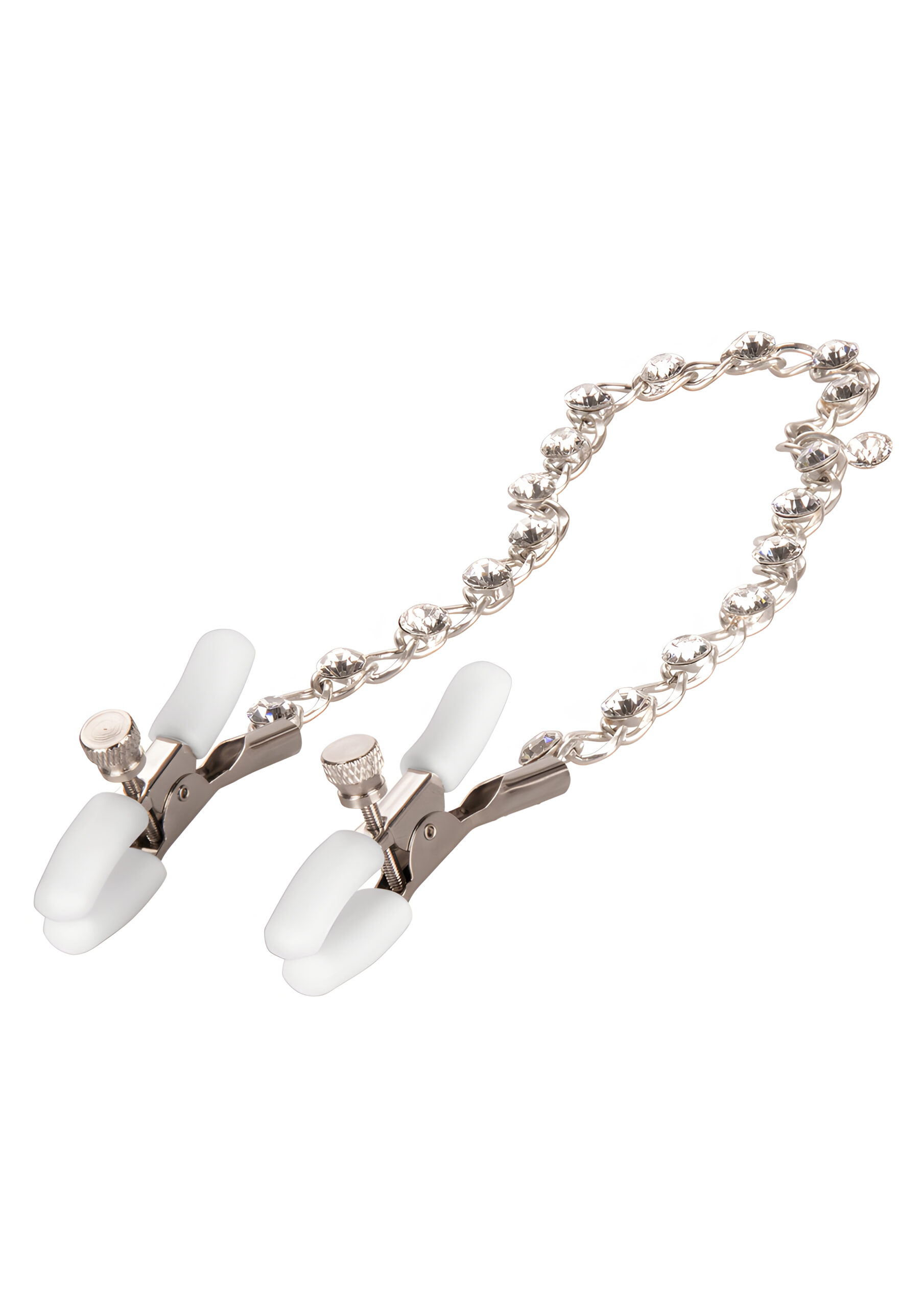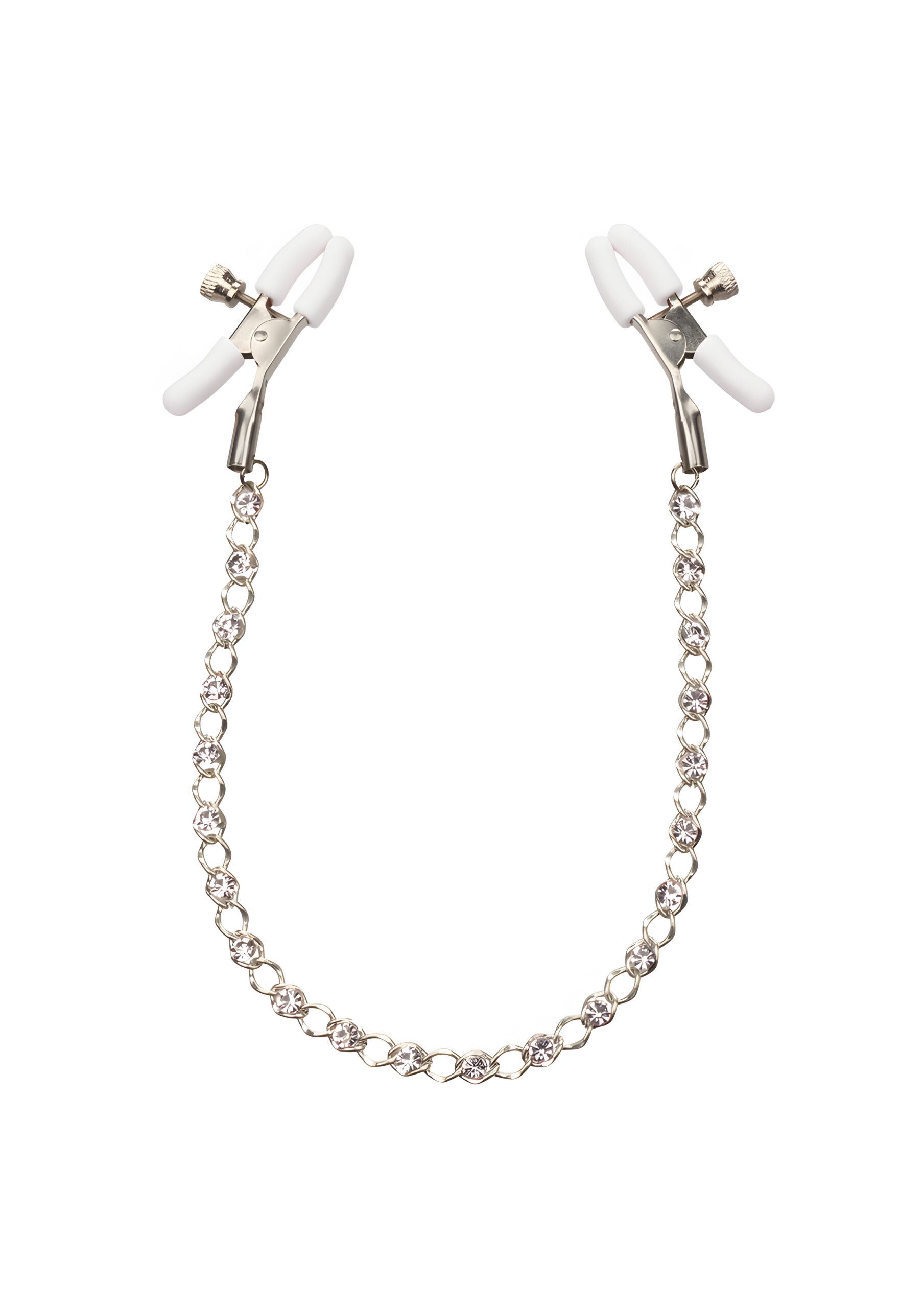 Introducing the Nipple Play Crystal Chain Nipple Clamps, a delightful addition to your intimate collection that promises to add sparkle and sensation to your experiences. Designed with both beginners and playful couples in mind, these elegant nipple clamps are perfect for those looking to explore new levels of pleasure with style and confidence. These nipple clamps are not just about aesthetics; they are crafted with your comfort and enjoyment as top priorities. Each clamp is fully adjustable, allowing you to find the perfect fit for your body. The soft, comfortable pads ensure a secure yet gentle grip, making them ideal for prolonged use without discomfort. Whether you’re teasing, tempting, or simply enhancing sensation, these clamps are designed to provide a pleasurable experience. The connecting chain is a standout feature, boasting a dazzling crystal inlay that adds a touch of glamour to your intimate play. The chain is made from high-quality, nickel-free iron, ensuring it is non-tarnishing and safe for those with sensitive skin. The crystals embedded in the chain are made from silica, adding a luxurious sparkle that catches the eye and enhances the overall aesthetic. With a length of 12 inches (30.5 cm), the chain provides enough flexibility for a variety of positions and movements, allowing you to experiment and find what feels best for you. Each clamp measures 2.25 inches (5.75 cm), making them compact yet effective in delivering the desired sensation. Weighing in at just 1.3 ounces, these nipple clamps are lightweight and easy to wear, ensuring they won’t weigh you down during your intimate moments. The materials used are phthalate-free, prioritizing your health and safety while you explore new sensations. For those concerned about durability, rest assured that the Nipple Play Crystal Chain Nipple Clamps come with a 1-year warranty, providing peace of mind with your purchase. This product is designed to be wearable and adjustable, catering to a wide range of preferences and body types. Here are some usage suggestions to get the most out of your Nipple Play Crystal Chain Nipple Clamps: Start slow: If you’re new to nipple clamps, begin with a gentle pressure and gradually increase as you become more comfortable. Pair with other toys: Enhance your experience by incorporating other toys or accessories into your playtime. Experiment with temperature: Try cooling or warming the clamps slightly before use to add an extra layer of sensation. Communicate: Always communicate with your partner to ensure a pleasurable and consensual experience. The Nipple Play Crystal Chain Nipple Clamps are a stylish and functional addition to any intimate collection. With their adjustable design, comfortable pads, and glamorous crystal chain, they offer a unique blend of comfort and allure. Whether you’re a beginner or a seasoned explorer, these clamps provide an opportunity to discover new pleasures in a safe and stylish manner.