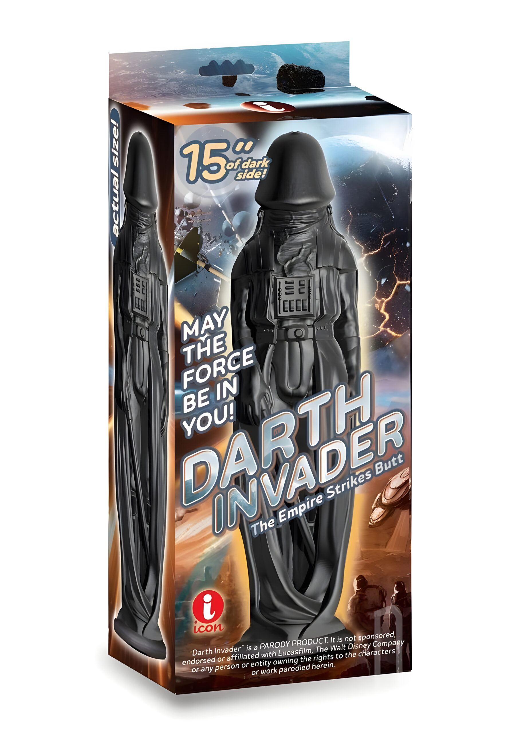 Introducing the Darth Invader, a playful and cheeky take on the iconic character from the Star Wars franchise. This 15-inch long parody dildo is designed to resemble Darth Vader, but with a twist. Instead of the traditional helmet, our Darth Invader sports a different kind of head, one that’s sure to bring a smile to your face and a whole lot of pleasure to your intimate moments. The Darth Invader is a massive, 15-inch long dildo that’s perfect for those who crave a bit of novelty in their sex toys. It’s not just about the size, though. This toy is designed with attention to detail, from the sleek, black color that calls to mind the dark side, to the penis head that replaces the traditional helmet. This is a toy that’s sure to stand out in your collection, and not just because of its size. But the Darth Invader isn’t just about looks. This is a toy that’s designed for pleasure. The size and shape are designed to hit all the right spots, providing intense stimulation that’s sure to satisfy. Whether you’re using it alone or with a partner, the Darth Invader is sure to deliver. When it comes to usage, the Darth Invader is versatile. It can be used for both vaginal and anal play, making it a great choice for all kinds of users. And with its size, it’s sure to provide a satisfying fullness that’s hard to beat. Just remember to use plenty of lube for a comfortable and pleasurable experience. The Darth Invader is also a great choice for those who love role play. Whether you’re a fan of Star Wars or just enjoy a bit of novelty in your sex life, this toy is sure to add a fun and playful element to your intimate moments. Imagine the scenarios you can create with this toy in hand. The force will definitely be with you. In terms of care and maintenance, the Darth Invader is easy to clean. Simply wash it with warm water and mild soap after each use, and let it air dry. This will ensure that your toy stays in good condition and is ready for your next adventure. In conclusion, the Darth Invader is a unique and playful sex toy that’s sure to bring a smile to your face and a whole lot of pleasure to your intimate moments. With its size, shape, and novelty design, it’s a toy that’s sure to stand out in your collection. Whether you’re a fan of Star Wars or just enjoy a bit of novelty in your sex life, the Darth Invader is a toy that’s worth considering. May the force be with you.