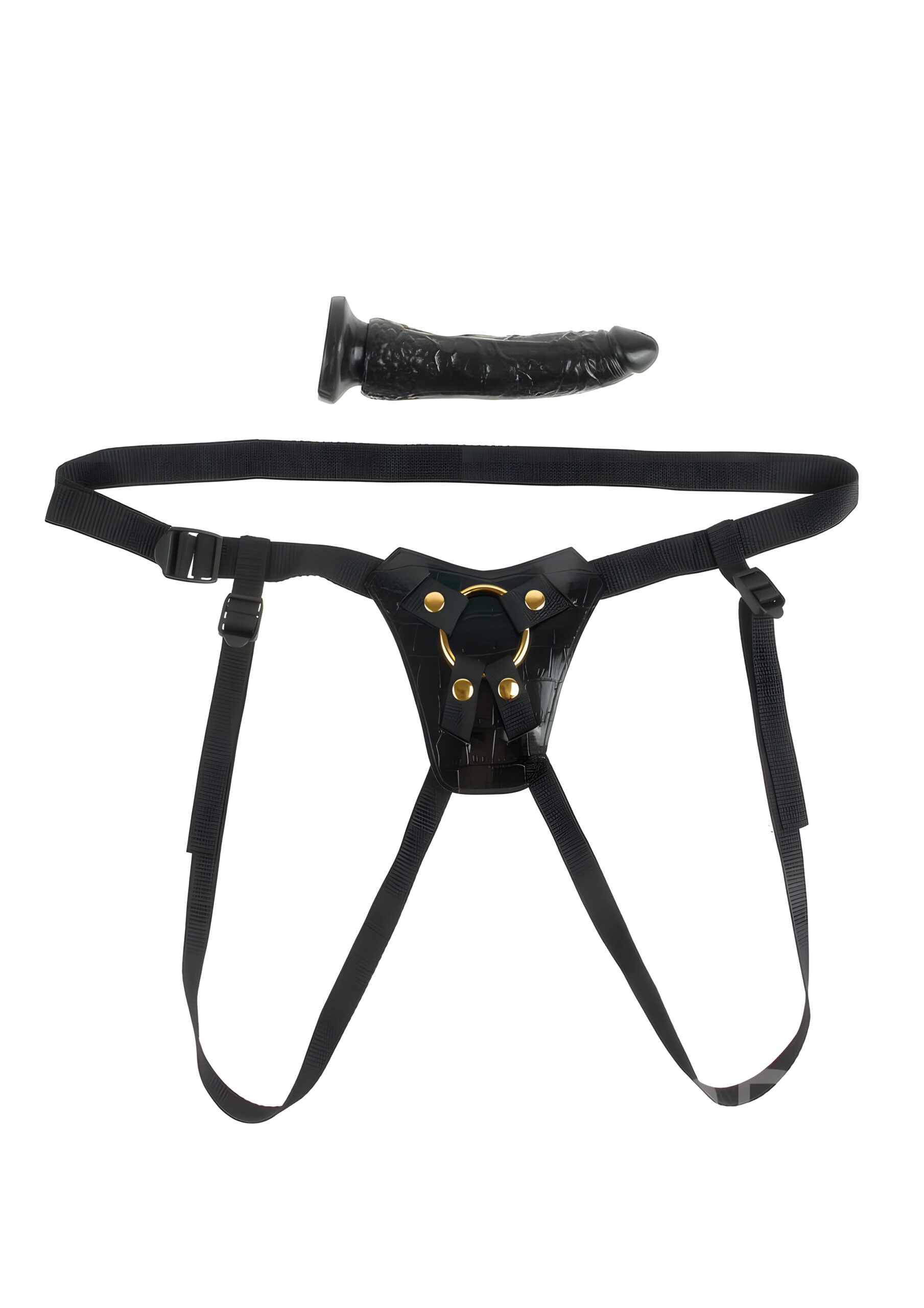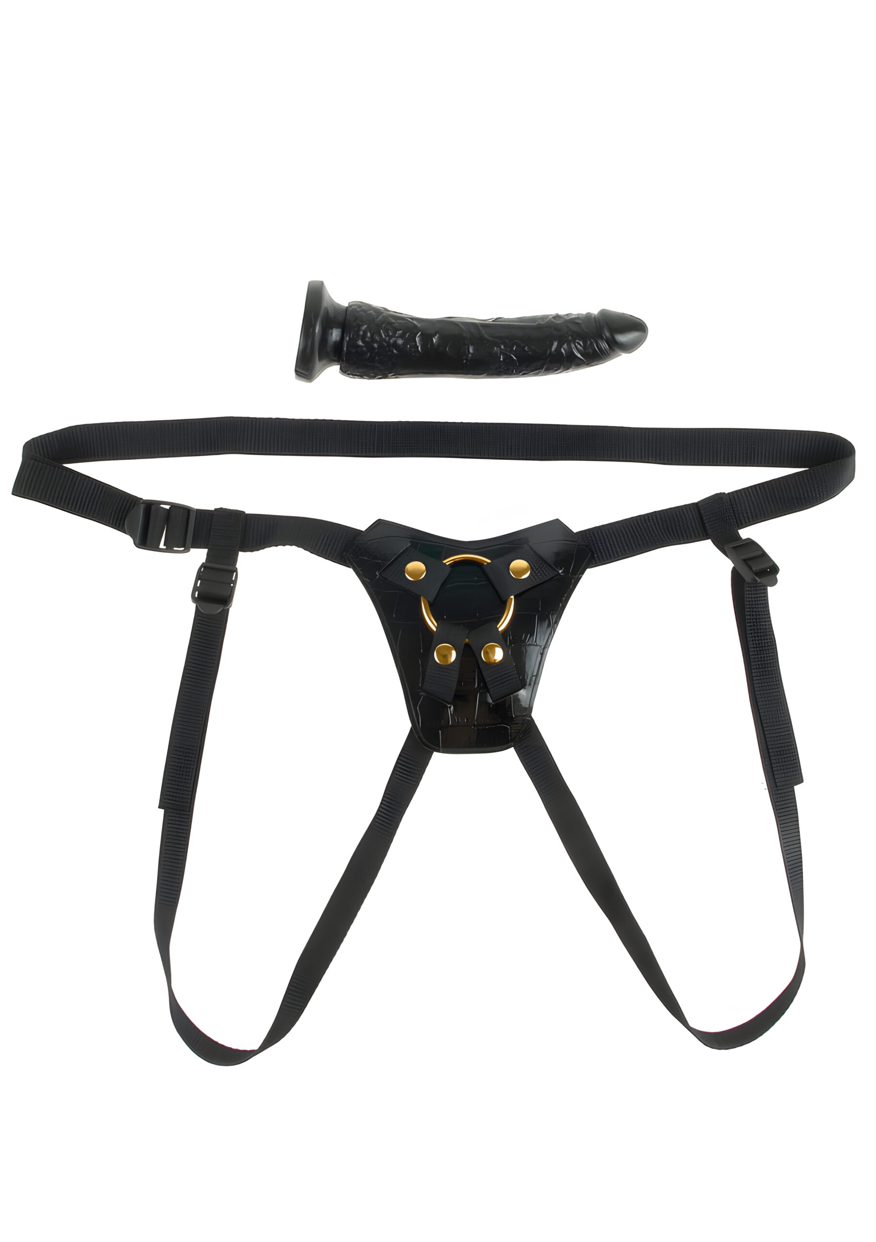 Take your pleasure up a notch with the Designer Strap-On. This all-in-one kit is the perfect way to explore new realms of pleasure with your partner. The low-rise harness features a soft plush liner that feels great against your skin, while the 4-way nylon straps are adjustable to fit most sizes. The metal O-ring holds everything in place when the action heats up, and can be removed to accommodate any sized O-ring. The 7-inch dildo features a realistic shape and textures that feel even better than the real thing. The tapered tip eases insertion while the lifelike veiny texture will drive your lover wild. Plus, the suction-cup base keeps it snug in place, but can also be removed from the harness for a wall-banging good time. Use plenty of Moist® lubricant for an extra-wet and wild experience, then cleanup is a snap after the fun with antibacterial toy cleaner and warm water. From Fetish Fantasy Gold®, it’s the gold standard for all your fetish fantasies. Explore new realms of pleasure with your partner using the Designer Strap-On. With its low-rise harness, soft plush liner, and adjustable 4-way nylon straps, you can get the perfect fit and hit the right spot every time. The metal O-ring holds everything in place, and can be removed to accommodate any sized O-ring. The 7-inch dildo features a realistic shape and textures that feel even better than the real thing. Its tapered tip eases insertion, while the lifelike veiny texture will drive your lover wild. Finish things off with the suction-cup base that keeps it snug in place, or remove it from the harness for a wall-banging good time. With plenty of Moist® lubricant, you can be sure that your experience will be wet and wild. When the fun is over, you can easily cleanup with antibacterial toy cleaner and warm water. Enjoy the gold standard of pleasure with the Designer Strap-On from Fetish Fantasy Gold®.