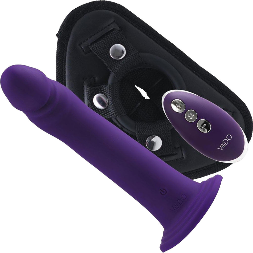 DIKI Silicone Rechargeable Vibrating Strap On kit With Harness & Remote By VeDO – Deep Purple