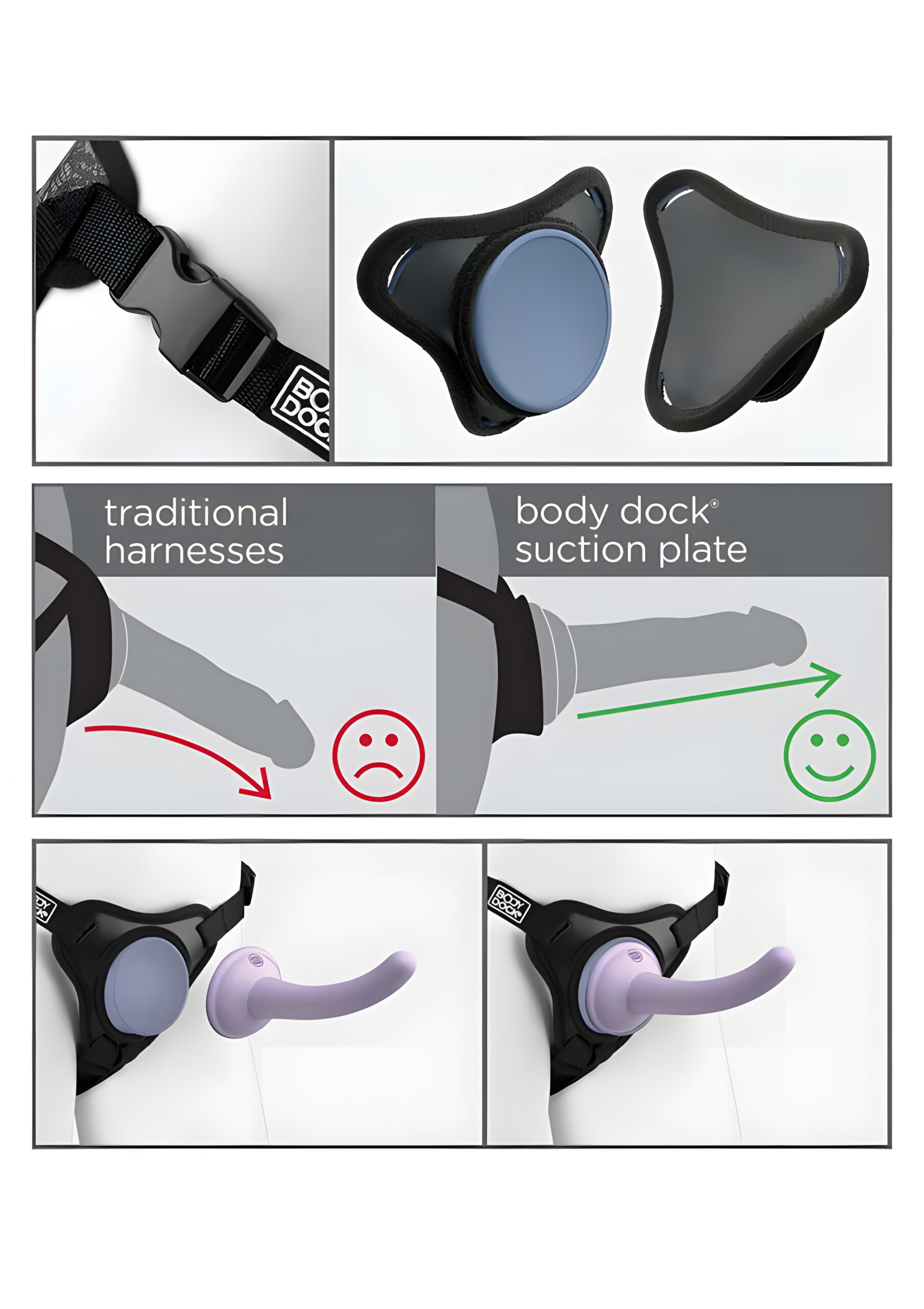 Introducing the Dillio Platinum Body Dock SE Pegging Kit, the ultimate harness system that revolutionizes the way you experience strap-on pleasure. Designed for comfort, versatility, and high-quality performance, this kit is sure to take your intimate moments to new heights. At the heart of the kit is the Dillio Platinum dildo, crafted with the highest quality platinum-cured silicone. This premium material offers exceptional strength, durability, and flexibility, ensuring a satisfying and long-lasting experience. With its non-sticky and smooth surface, the Dillio Platinum dildo glides effortlessly, enhancing your pleasure with every movement. The super-strong suction cup base provides reliable stability, allowing you to explore a variety of positions and angles without worrying about the dildo losing its grip. Whether you’re a beginner or an experienced user, the Dillio Platinum dildo is suitable for all levels, accommodating your unique desires and preferences. The Body Dock SE is a strap-on harness that sets new standards in terms of ease and comfort. Unlike traditional harness systems, the patented push and play design eliminates the need for rings or snaps. Simply attach the suction cup of the Dillio Platinum dildo to the silicone docking plate, and you’re ready to go. The Body Dock SE works seamlessly with most dildos on the market, including ones you may already own, adding versatility to your strap-on collection. To enhance the experience, the angled suction dock of the Body Dock SE helps to keep the dildo erect and in position, ensuring optimal pleasure for both partners. The flexible and form-fitted body plate molds to your body shape, providing a secure and comfortable fit throughout your intimate moments. The heavy-duty nylon straps and quick-release buckles allow for easy adjustment, accommodating waist sizes up to 54″ (137 cm) and providing a personalized fit for a variety of body types. For your peace of mind, every Dillio Platinum dildo is responsibly crafted with compliant materials and undergoes rigorous quality checks. You can indulge in the pleasure of every Dillio Platinum masterpiece with full confidence, knowing that you’re experiencing a top-quality product. Operating the Body Dock SE Harness is a breeze. Simply push the suction cup of the Dillio Platinum dildo against the concaved suction dock until all the air between them is released. The suction creates a super-strong vacuum that holds tight, even during the most intense moments of passion. To release the suction, simply lift the edge of the suction cup.