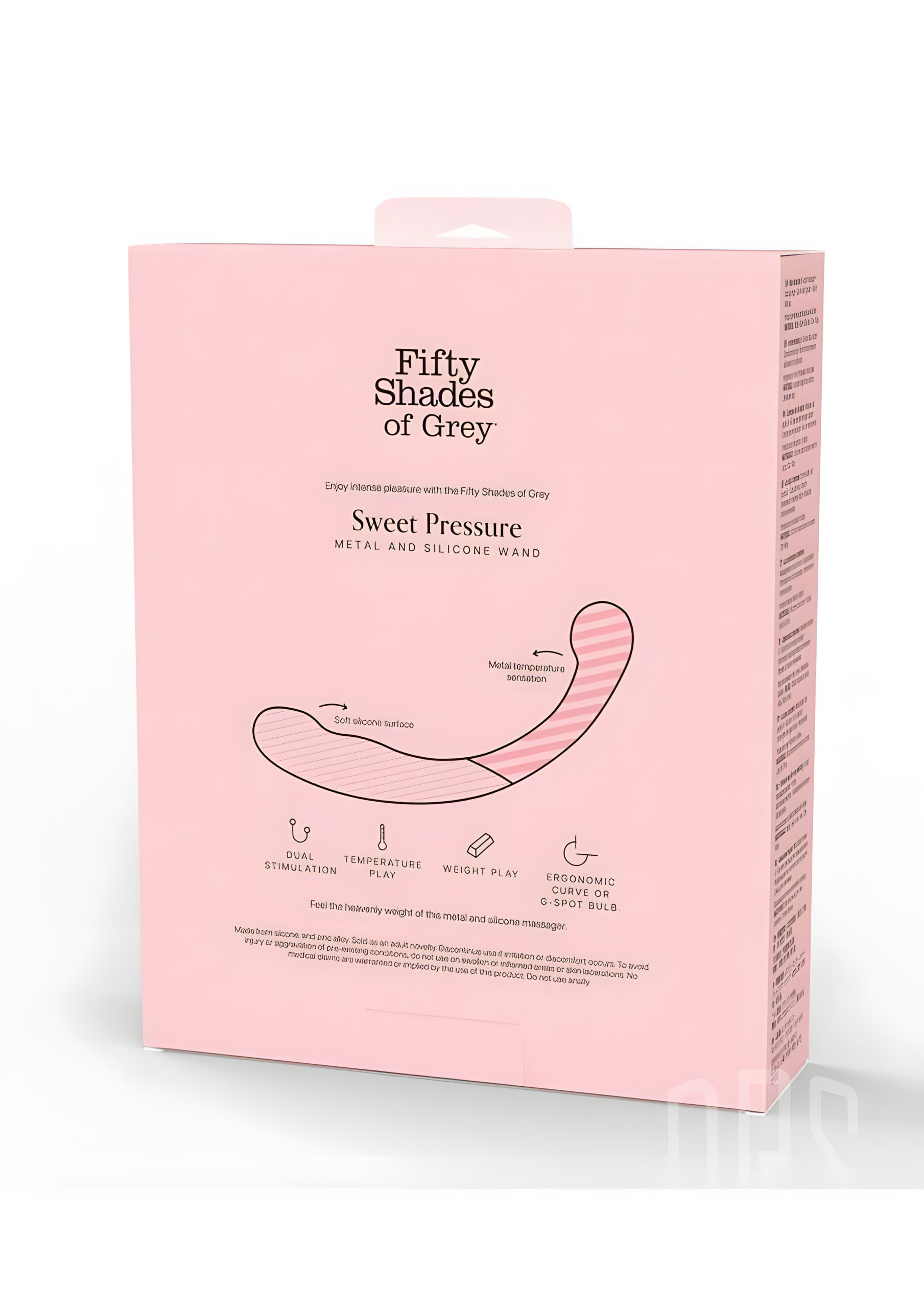 Indulge in the luxurious versatility of the Fifty Shades of Grey Sweet Pressure Dark Steel and Silicone Double-Ended Dildo, a thoughtfully crafted pleasure tool designed to elevate your intimate moments. Whether you’re drawn to the cool, weighty allure of metal or the soft, velvety touch of silicone, this dual-ended toy offers a world of sensations to explore. With its sleek design and premium materials, it’s a must-have addition to any collection, whether you’re a seasoned enthusiast or just beginning to explore the world of pleasure products.At one end, you’ll find the solid metal section, a 5-inch masterpiece of smooth, rounded design. This end is perfect for those who enjoy the unique thrills of temperature play. The metal can be easily warmed or cooled to suit your preferences, offering an exciting way to heighten your sensory experience. Simply run it under warm water for a cozy, soothing sensation, or place it in the fridge for a refreshing chill. The weight of the metal adds a satisfying sense of fullness and pressure, making it ideal for those who appreciate a firmer touch. Its bulbous head is designed to glide effortlessly, providing a delightful combination of firmness and smoothness that’s perfect for exploring new depths of pleasure.On the opposite end, the silicone side offers a completely different experience. Crafted with G-spot stimulation in mind, this end features an internal length of 5.7 inches and a girth of 4 inches at its widest point. The soft, velvety silicone feels gentle against the skin, yet its firm structure ensures it delivers the precise pressure needed to hit all the right spots. The ergonomic curve of the silicone end makes it particularly effective for targeted stimulation, allowing you to focus on your most sensitive areas with ease. For the best experience, pair it with a high-quality water-based lubricant to enhance the glide and ensure maximum comfort during use.What sets this toy apart is its duality. The combination of metal and silicone in one elegant design allows you to switch between two distinct sensations, offering endless possibilities for exploration. You can start with the cool, weighty metal to awaken your senses, then transition to the smooth, targeted stimulation of the silicone end – or mix and match as you please. Alternating between the two ends during a single session can add variety and excitement, keeping your experience fresh and engaging every time.This double-ended dildo is part of the Fifty Shades of Grey Official Pleasure Collection, a range of products approved by the series’ author, E L James. Whether you’re a fan of the books or simply looking for a high-quality toy to enhance your pleasure, this piece is a fantastic choice. The included satin storage bag adds a touch of elegance, making it a thoughtful gift for a partner or a luxurious treat for yourself. The discreet bag also ensures your toy stays clean and protected when not in use, adding to its appeal as a long-term investment in your personal pleasure.For those new to temperature play, this toy provides an excellent introduction. Start by experimenting with mild warmth or coolness to discover what feels most pleasurable for you. Always test the temperature on your wrist before use to ensure it’s safe and comfortable. When using the silicone end, focus on slow, deliberate movements to fully appreciate its G-spot targeting capabilities. The combination of textures, weights, and temperatures makes this toy a versatile companion for solo sessions or shared experiences with a partner.Here’s a quick summary of its standout features:Double-ended design for a variety of sensations5-inch solid metal end for temperature and weight play5.7-inch silicone end with a 4-inch girth for G-spot stimulationDurable, body-safe materials: stainless steel and siliconeWaterproof and submersible for bath or shower playIncludes a satin storage bag for discreet storage or giftingMaintaining your toy is simple and essential for ensuring its longevity. Clean both ends thoroughly before and after each use with warm water and a suitable toy cleaner. Avoid using silicone-based lubricants with the silicone end, as they can degrade the material over time. With proper care, this elegant and functional piece will remain a reliable and cherished part of your collection for years to come.Whether you’re exploring solo or sharing the experience with a partner, the Fifty Shades of Grey Sweet Pressure Double-Ended Dildo is designed to cater to a wide range of preferences and desires. Its combination of premium materials, thoughtful design, and luxurious touches makes it a standout choice for anyone seeking to enhance their intimate moments. From the thrill of temperature play to the targeted pleasure of G-spot stimulation, this versatile toy invites you to discover new dimensions of satisfaction, all while embracing the sensual spirit of the Fifty Shades of Grey series.