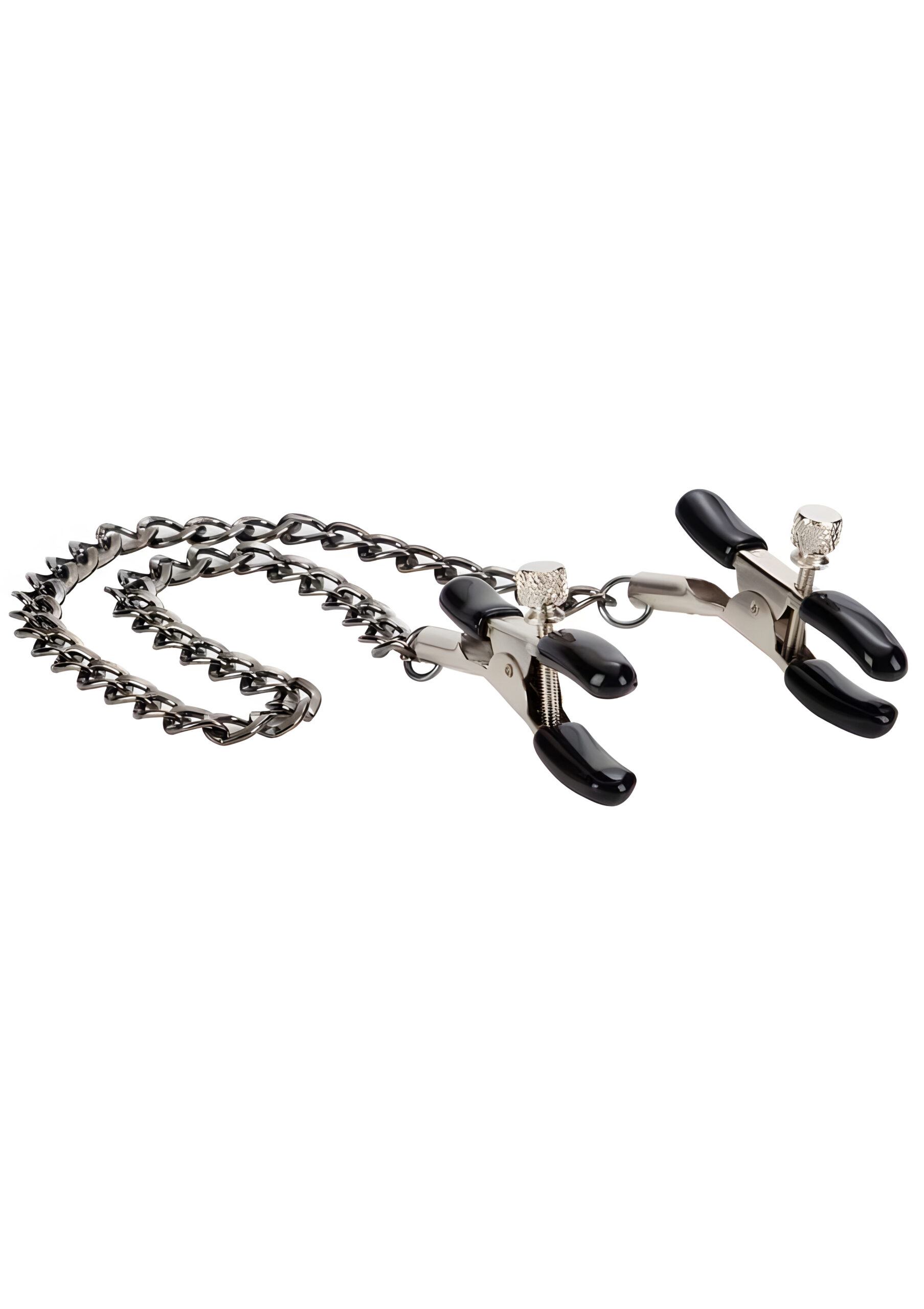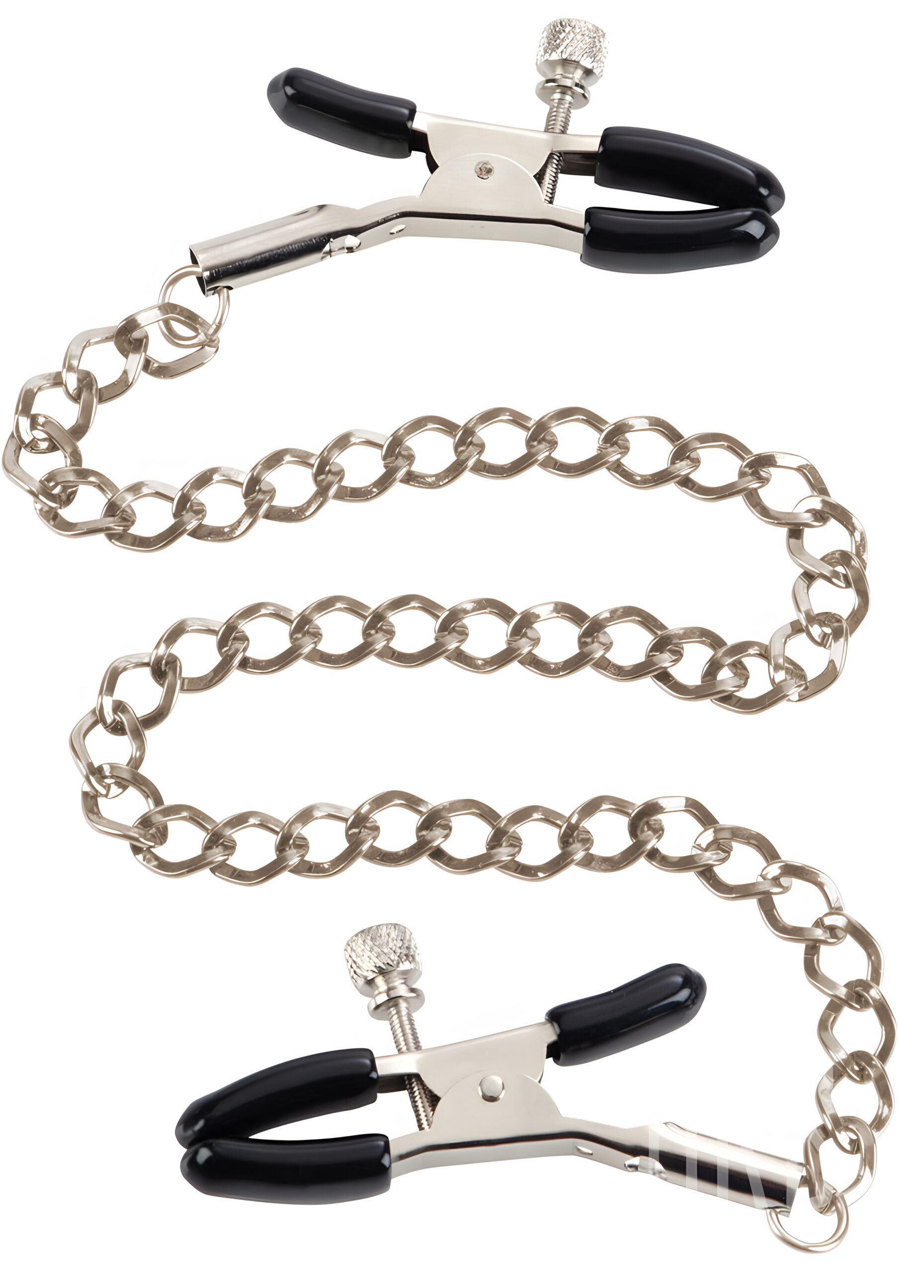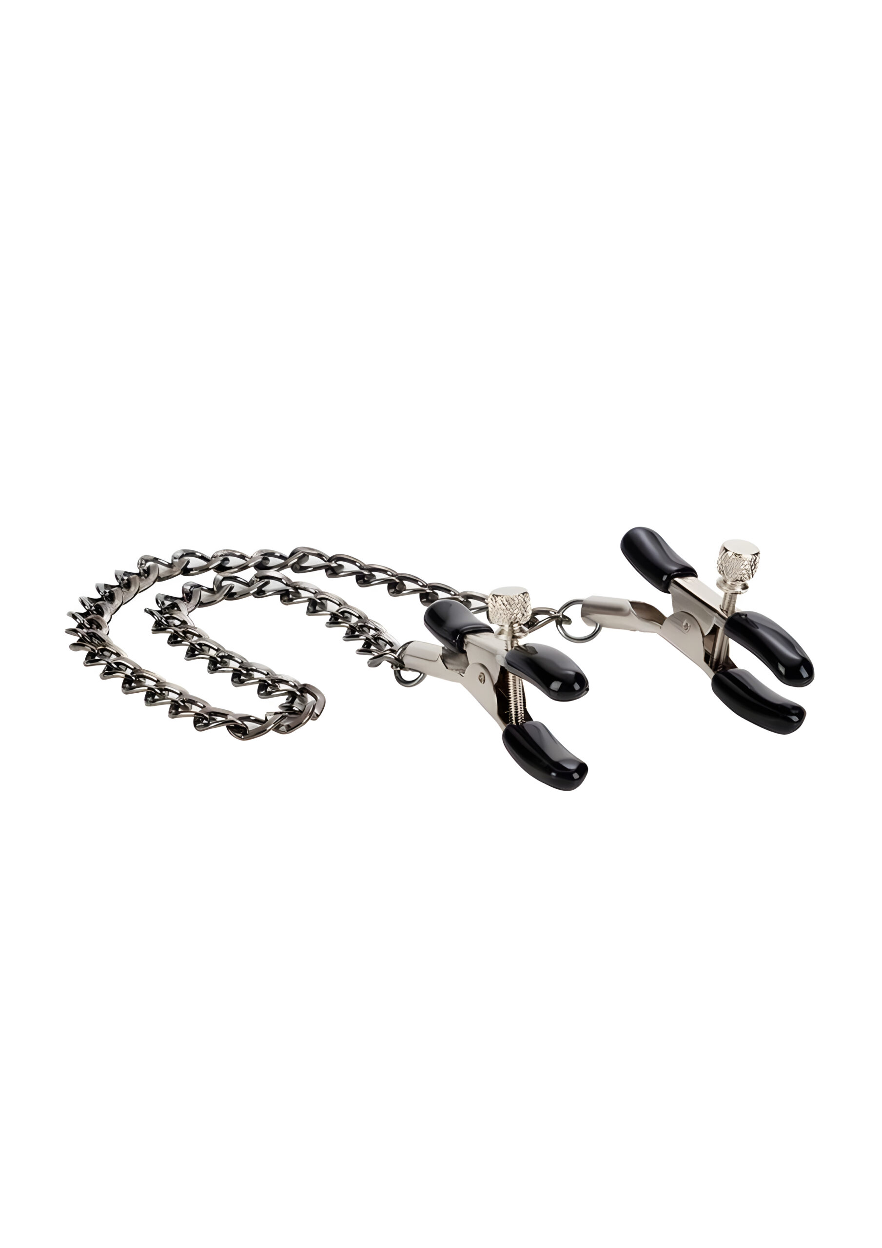 The First Time Fetish Nipple Teasers are perfect for exploring your pleasure/pain threshold. These fully adjustable nipple clamps make a great addition to any fetish or intimate toy collection. Use them to experiment and heighten sensual sensations and orgasmic satisfaction. The teasers are made from nickel-free iron and consist of a strong metal chain measuring 12.75 inches (32.5 cm) with a pair of fully adjustable clamps attached to each end. The clamps are fitted with soft phthalate-free PVC pads for a comfortable fit. To use, squeeze to open the clamps fully and position directly on the nipples. You can adjust the secure fit by gently twisting the screws; tightening them enhances pleasurable sensations while pulling on the metal chain tests sensitivity even further. This toy is suitable for first time or experienced users as it is designed to balance the discomfort of pain with the stimulation of pleasure. The Teasers are ideal for BDSM, fetish role-plays and exotic experiences; use them alongside other accessories to create an arousing and memorable encounter! When not in use it is recommended that you keep them clean by spraying them with a toy cleaner. Spice up your next intimate session by introducing these First Time Fetish Nipple Teasers into play! Begin by squeezing open the clamps fully before positioning them directly onto your partner’s nipples – adjusting their secure fit by gently twisting the screws will enhance pleasurable sensations during playtime! Once in place you can pull on the metal chain to test sensitivity even further – this will help you explore your partner’s pleasure/pain threshold while taking full control over their arousal levels! For an extra naughty experience try using these teasers alongside other accessories such as blindfolds or restraints – this will create an unforgettable encounter that both you and your lover will enjoy!