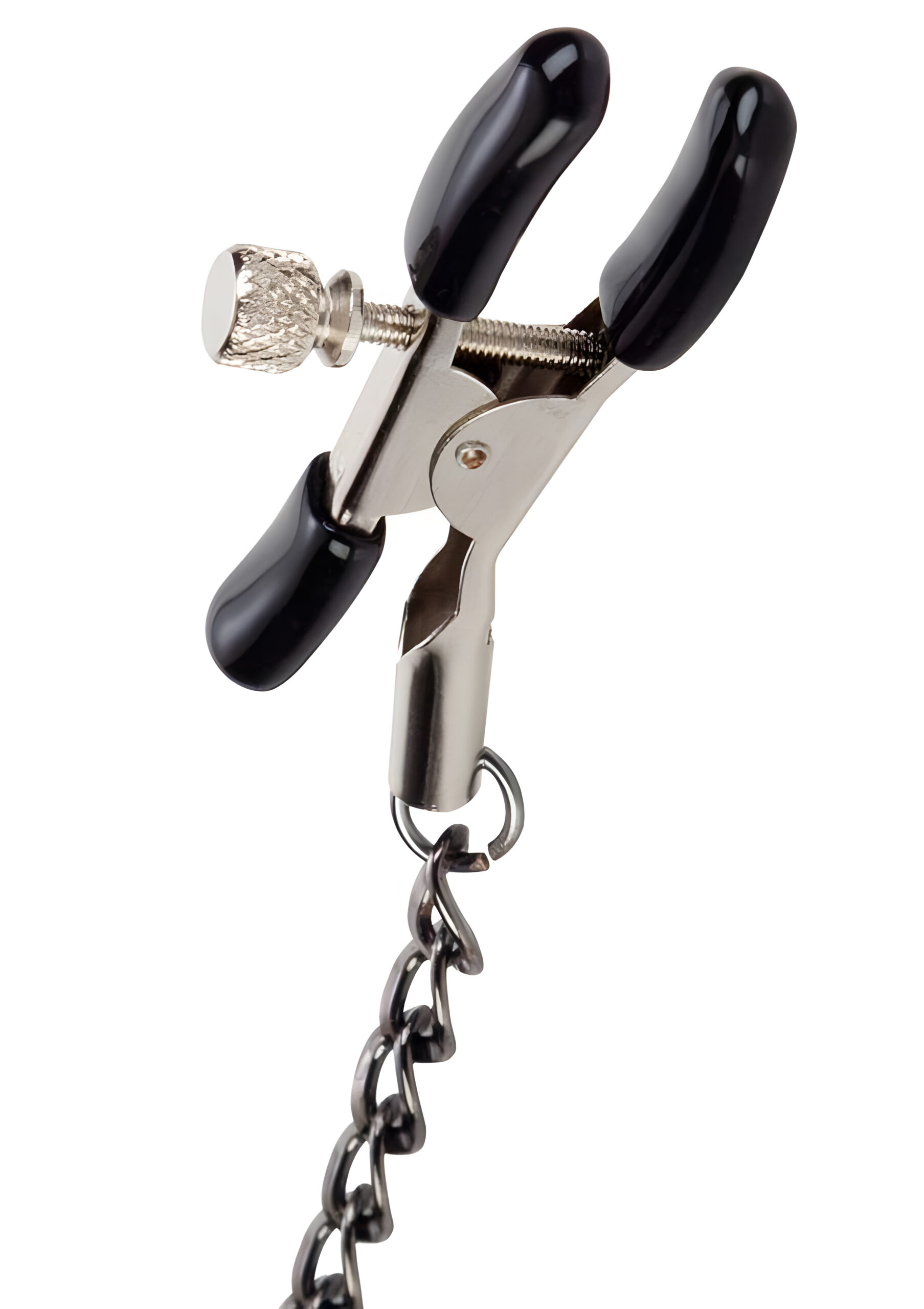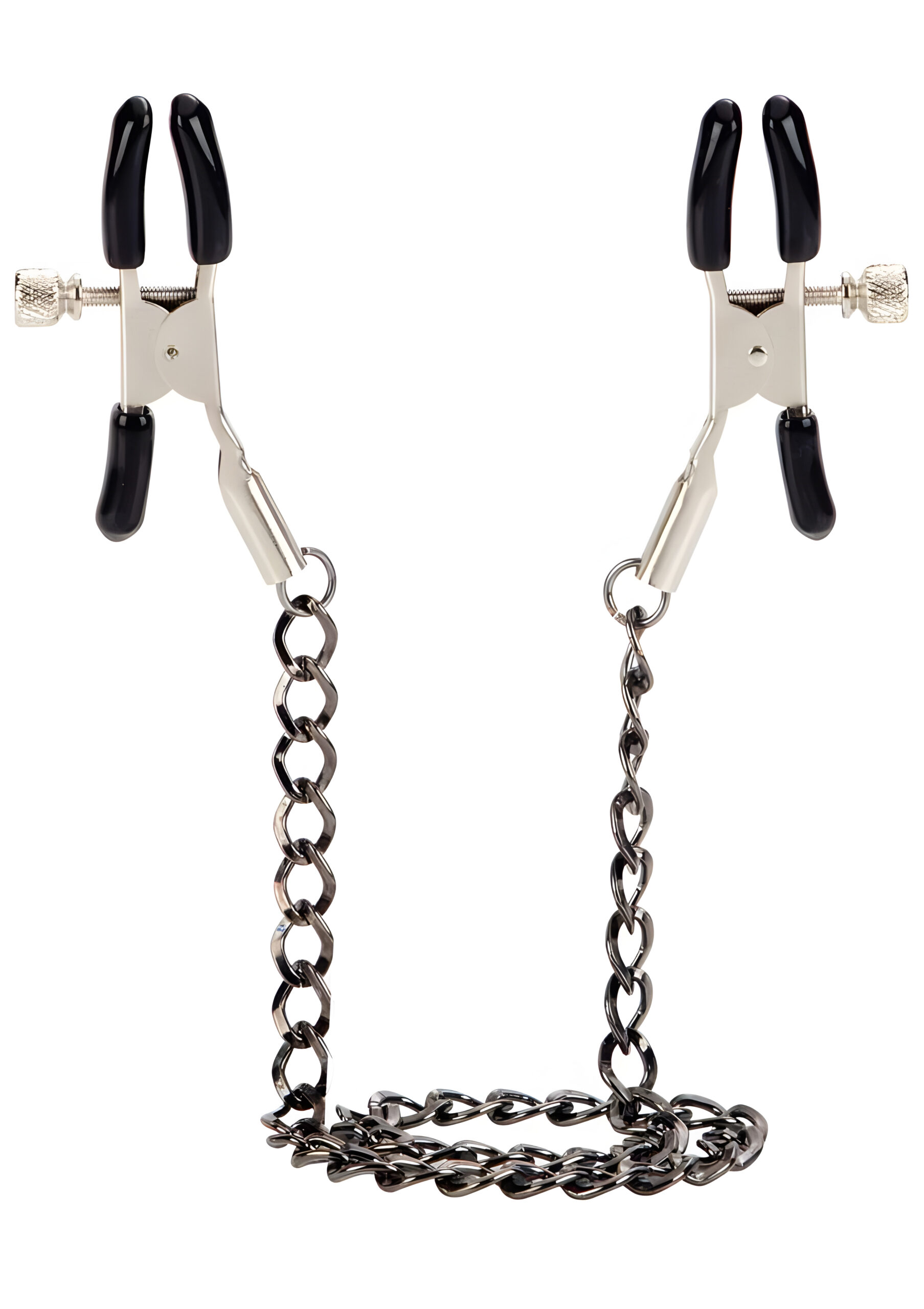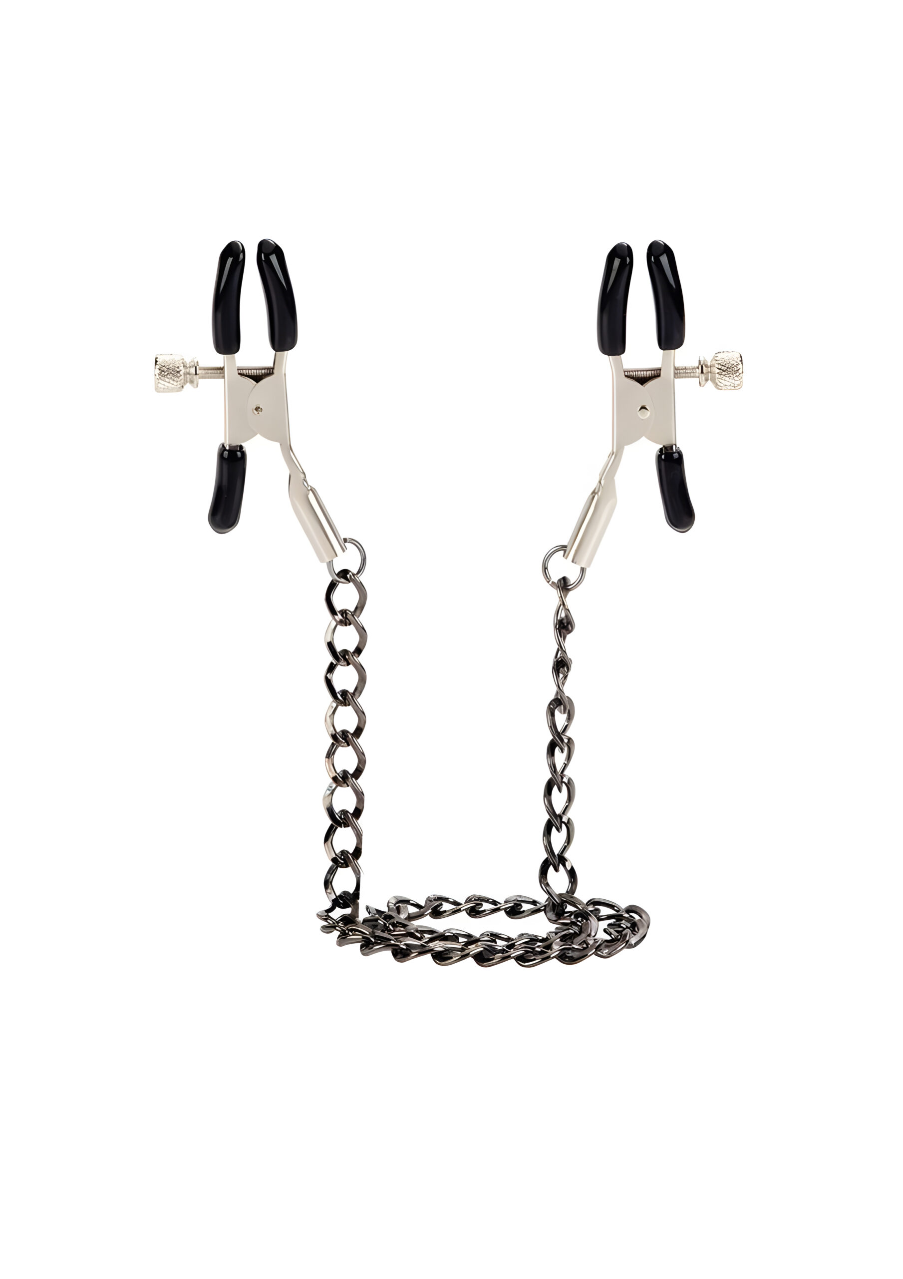 The First Time Fetish Nipple Teasers are perfect for exploring your pleasure/pain threshold. These fully adjustable nipple clamps make a great addition to any fetish or intimate toy collection. Use them to experiment and heighten sensual sensations and orgasmic satisfaction. The teasers are made from nickel-free iron and consist of a strong metal chain measuring 12.75 inches (32.5 cm) with a pair of fully adjustable clamps attached to each end. The clamps are fitted with soft phthalate-free PVC pads for a comfortable fit. To use, squeeze to open the clamps fully and position directly on the nipples. You can adjust the secure fit by gently twisting the screws; tightening them enhances pleasurable sensations while pulling on the metal chain tests sensitivity even further. This toy is suitable for first time or experienced users as it is designed to balance the discomfort of pain with the stimulation of pleasure. The Teasers are ideal for BDSM, fetish role-plays and exotic experiences; use them alongside other accessories to create an arousing and memorable encounter! When not in use it is recommended that you keep them clean by spraying them with a toy cleaner. Spice up your next intimate session by introducing these First Time Fetish Nipple Teasers into play! Begin by squeezing open the clamps fully before positioning them directly onto your partner’s nipples – adjusting their secure fit by gently twisting the screws will enhance pleasurable sensations during playtime! Once in place you can pull on the metal chain to test sensitivity even further – this will help you explore your partner’s pleasure/pain threshold while taking full control over their arousal levels! For an extra naughty experience try using these teasers alongside other accessories such as blindfolds or restraints – this will create an unforgettable encounter that both you and your lover will enjoy!