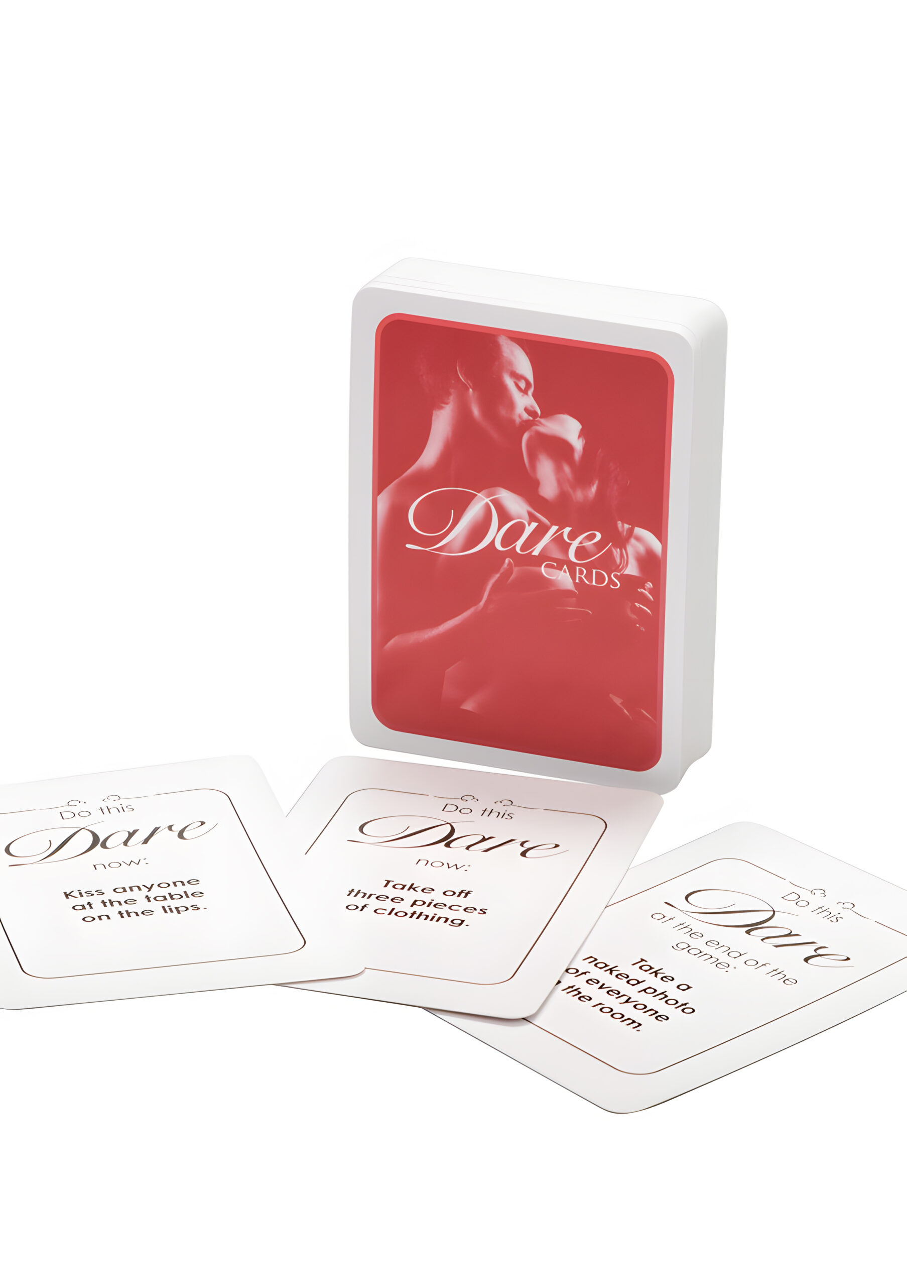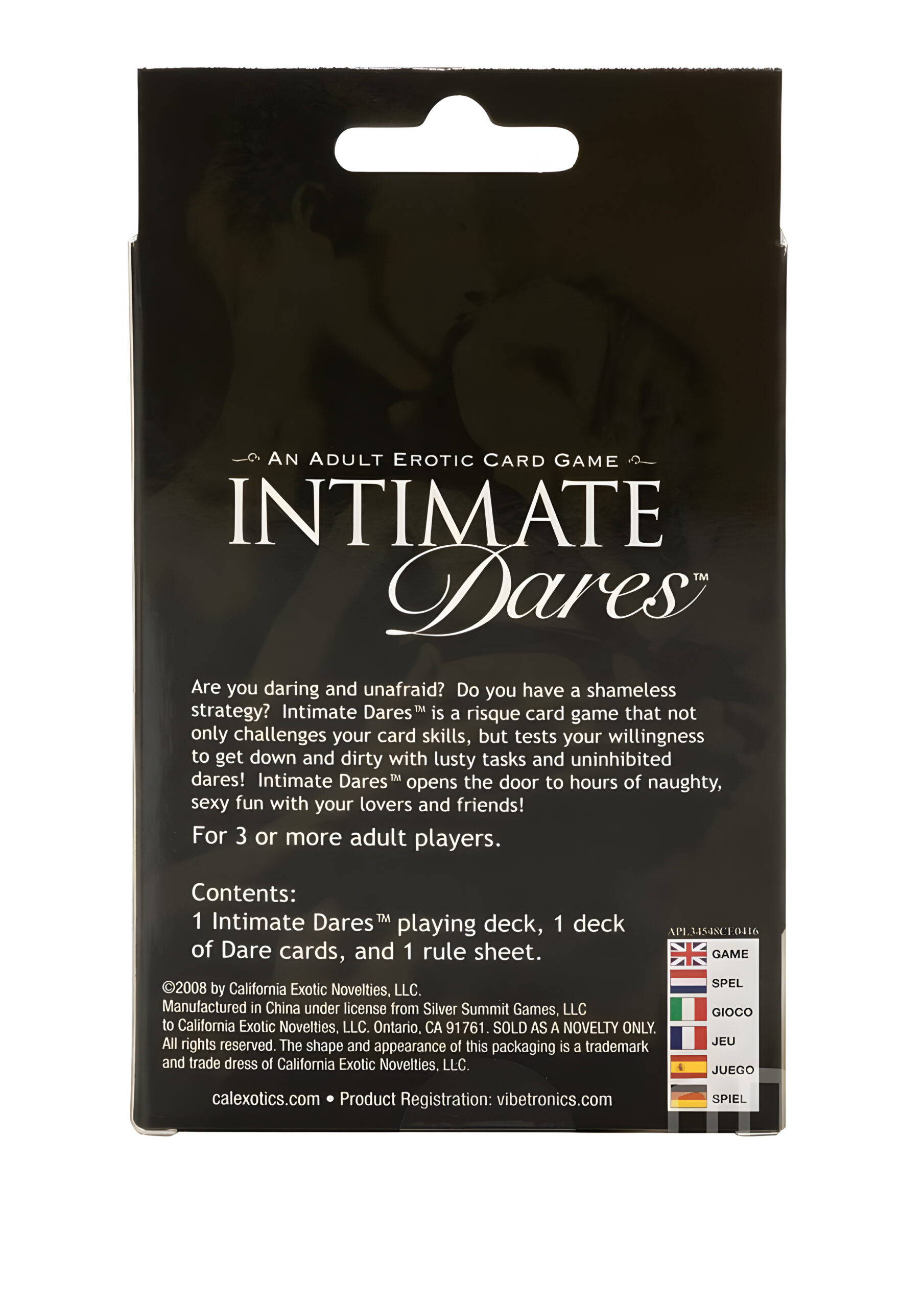Unveil a night of daring delight with Intimate Dares, the engaging adult card game designed to bring couples closer through playful and bold challenges. Perfect for one or more couples, this game invites you to explore new dimensions of intimacy and excitement in a fun, lighthearted way. Whether you’re planning a romantic evening or looking to spice up a casual night in, Intimate Dares sets the stage for connection, laughter, and the discovery of hidden desires. It’s more than just a game; it’s an opportunity to deepen your bond and create lasting memories together.At the heart of Intimate Dares are two thoughtfully crafted decks of cards: the Intimate Dares playing deck and a separate deck of Dare cards. Each card is designed to inspire a unique adventure, ranging from flirtatious tasks to more seductive surprises. These cards encourage players to step outside their comfort zones, explore fantasies, and share playful moments with their partner or group. The challenges are varied, ensuring that there’s something for everyone, whether you’re feeling cheeky, romantic, or daring. The game also includes a detailed rule booklet, making it easy to jump right in without confusion. The straightforward instructions ensure you can focus on the fun and connection rather than getting bogged down in complicated rules.The compact design of Intimate Dares is another feature that makes it a standout choice. Measuring just 6.25 inches by 3.75 inches by 0.75 inches (16 cm x 9.5 cm x 2 cm), it’s small enough to slip into a bag or drawer, making it easy to store or take with you on the go. Whether you’re planning a spontaneous getaway or a cozy night at home, this game is ready to travel wherever your adventures take you. Its multi-colored design adds a touch of vibrancy and fun, perfectly complementing the playful nature of the game. Weighing only 6.3 ounces, it’s lightweight and portable, making it an ideal addition to your collection of date night essentials.Intimate Dares isn’t just about fun and games; it’s also a powerful tool for fostering connection and communication. Whether you’re in a new relationship or have been together for years, the game encourages open dialogue and shared laughter. It’s a great way to break the ice, spark meaningful conversations, and reignite the spark in your relationship. For couples looking to deepen their bond, the game offers a unique way to explore each other’s desires and boundaries in a safe, supportive environment. Even for groups of friends, it provides a cheeky and entertaining way to bond, ensuring that everyone leaves with a smile.One of the best things about Intimate Dares is its versatility. The game is designed to cater to players of all comfort levels, making it an excellent choice for those new to adult games as well as seasoned players. The challenges range from lighthearted and playful to more daring, allowing you to tailor the experience to suit your preferences. If a particular card doesn’t feel right for you, it’s easy to skip or modify it, ensuring that everyone feels comfortable and engaged. This flexibility makes the game accessible to all, regardless of experience or comfort level.For those looking for inspiration, there are countless ways to incorporate Intimate Dares into your routine. Planning a romantic evening at home? Use the game to set the mood and create an atmosphere of fun and intimacy. Heading off on a weekend getaway? Pack the game to add an extra layer of excitement to your trip. Hosting a couples’ game night? Intimate Dares makes a fantastic icebreaker, providing lighthearted entertainment that’s sure to get everyone laughing. It’s also a thoughtful addition to special occasions like anniversaries or Valentine’s Day, offering a unique way to celebrate your connection.Usage suggestions:Plan a romantic evening at home and use Intimate Dares to set the mood.Bring it along for a weekend getaway to add an extra layer of fun to your trip.Use it as an icebreaker at a couples’ game night for some lighthearted entertainment.Incorporate it into a special occasion, such as an anniversary or Valentine’s Day celebration.Manufactured by CalExotics, a trusted name in intimate products, Intimate Dares is backed by a one-year warranty, giving you peace of mind as you dive into the fun. Its quality construction and thoughtful design ensure that it’s a reliable and enjoyable choice for anyone looking to add a little adventure to their relationship. Whether you’re exploring new boundaries or simply seeking a fun way to connect, this game offers endless opportunities for laughter, bonding, and unforgettable moments. It’s more than just a deck of cards; it’s a gateway to deeper connection and shared joy.Let Intimate Dares inspire your next date night or gathering, and discover how a simple game can transform an ordinary evening into something extraordinary. With its mix of playful challenges, seductive surprises, and opportunities for connection, Intimate Dares is a must-have for anyone looking to add a spark of excitement to their relationship. Whether you’re laughing over a cheeky dare or sharing a tender moment, this game promises to create memories that will last long after the cards are put away.
