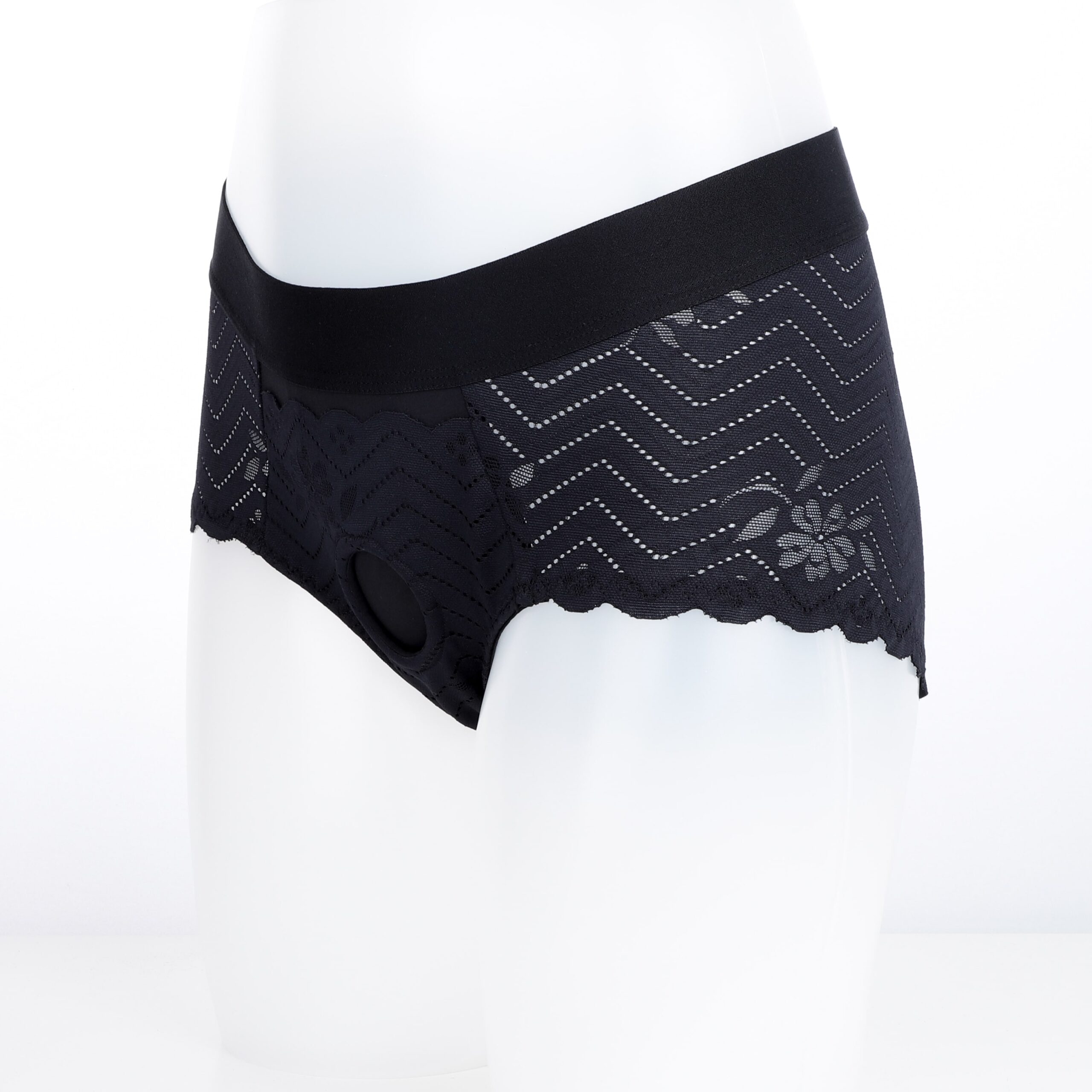 Key Features:Perfect Fit: For the best fit, choose the smaller size to ensure a snug and comfortable experience.Elegant Design: The harness features just enough lace to exude the desired sex appeal, inviting your partner to explore endless possibilities.Comfortable Fabric: Made from soft, breathable material that feels and fits perfectly against your skin, allowing for free movement in any direction.Waist-Cinching Belt: The elastic belt is perfectly positioned to cinch your waist, giving you the coveted hourglass shape and enhancing your natural curves.Discreet O Ring: The O ring at the front of the panties lets your imagination run wild, providing a secure hold for your favorite silicone dildo.