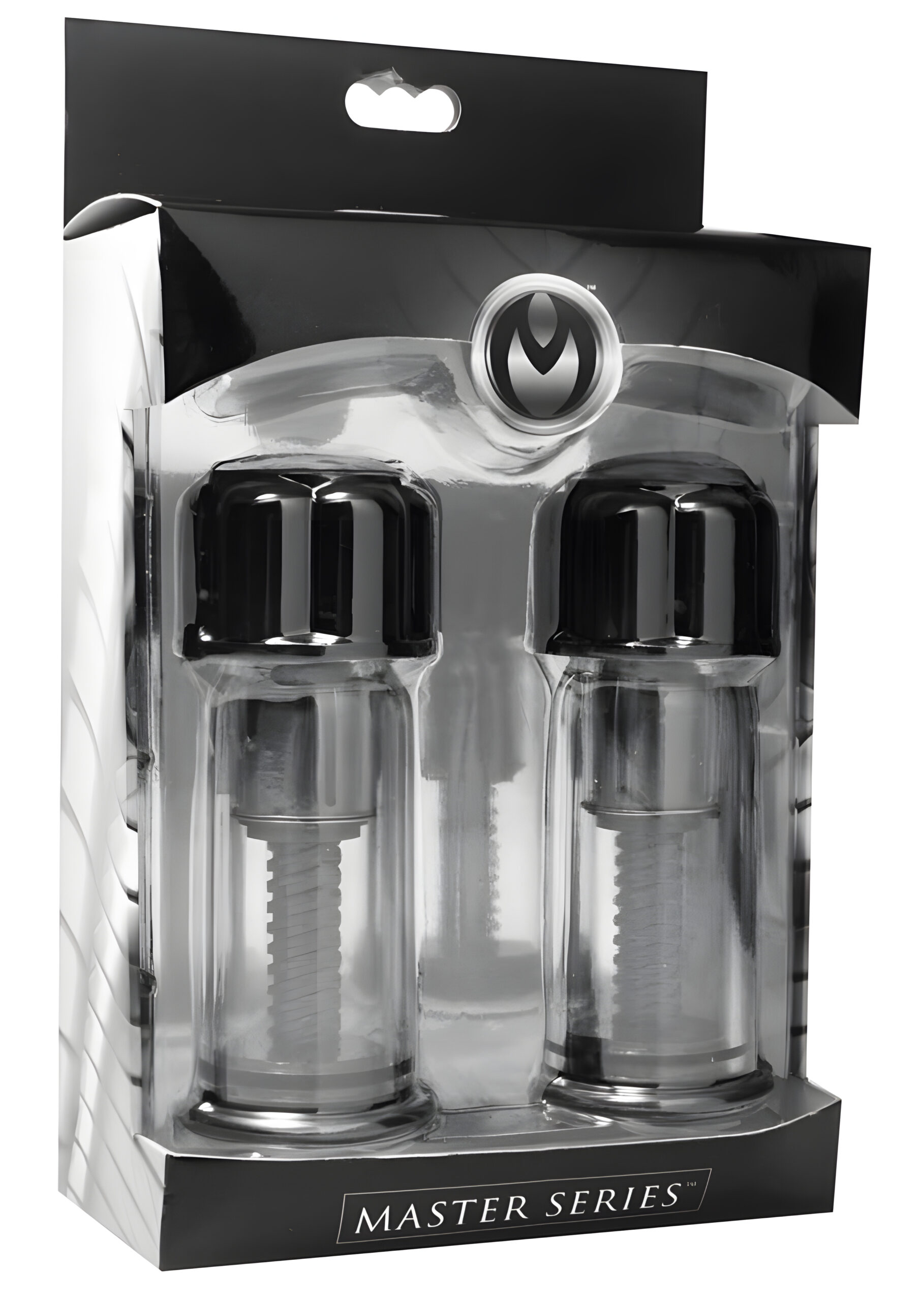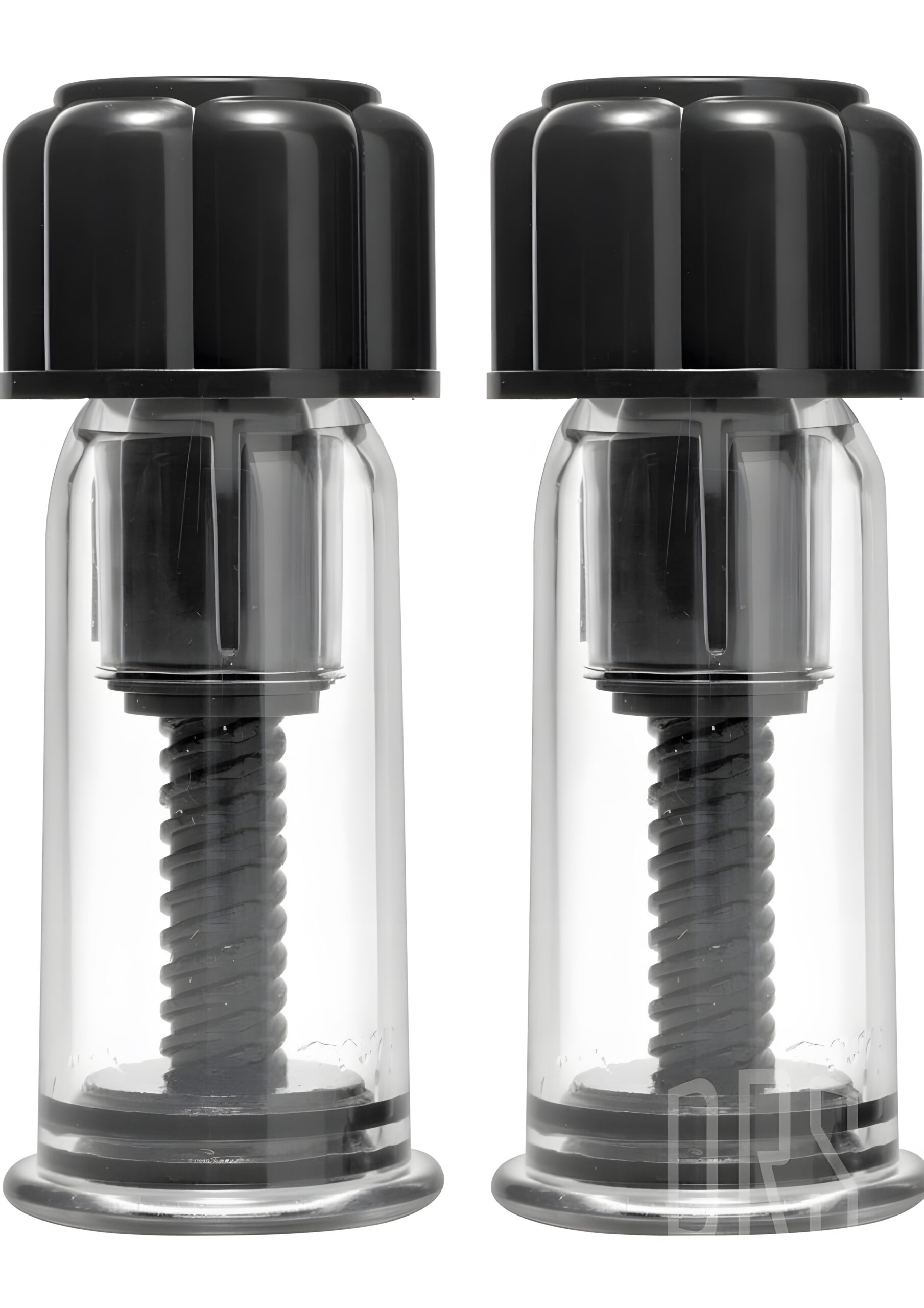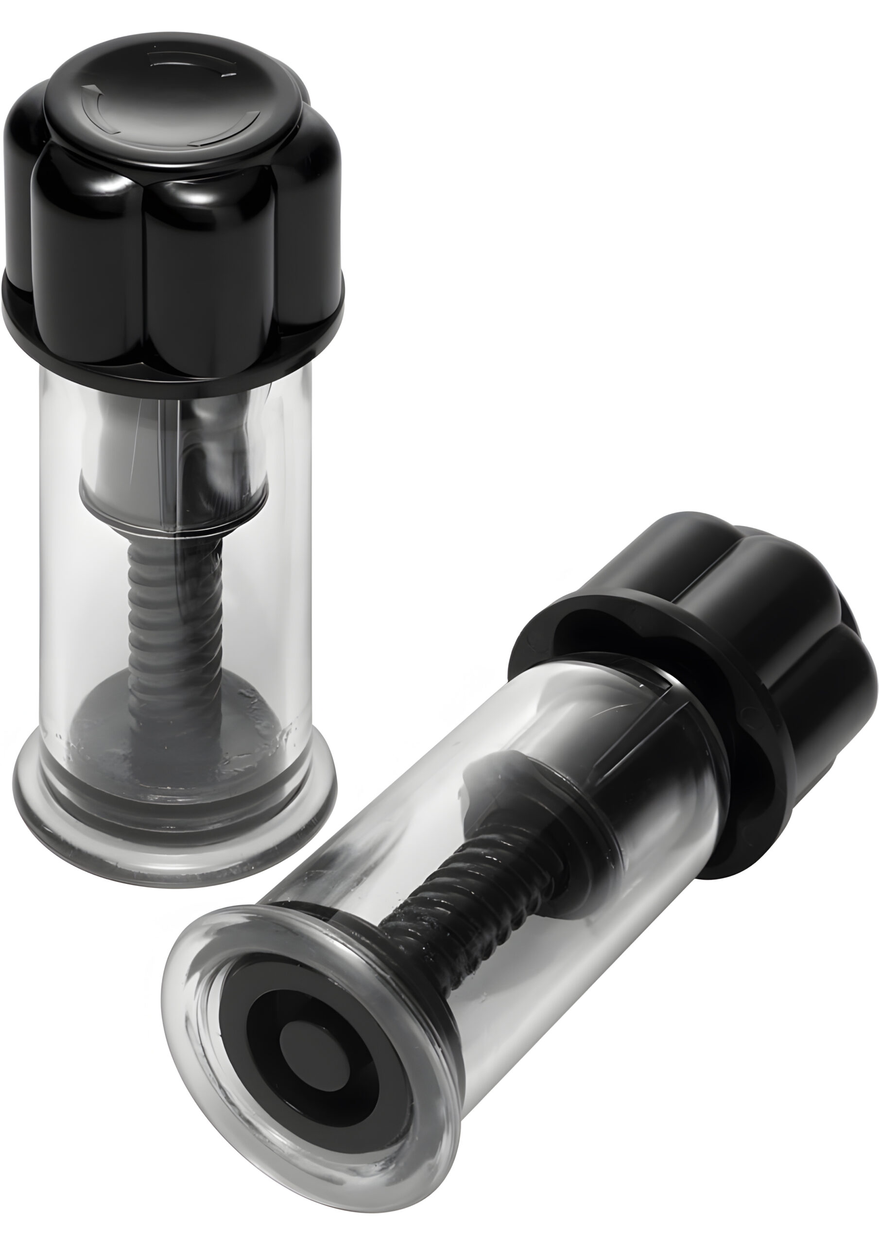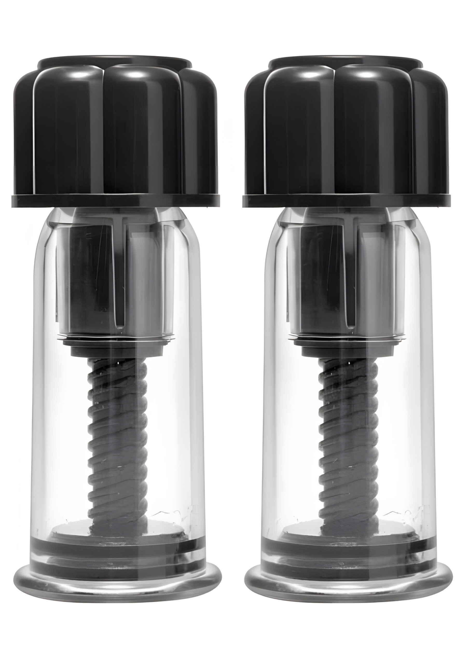 When it comes to nipple suction there is nothing stronger than the Maxx Powerful Twist nipple suckers. They are built for maximum nipple suction and will be a favorite for anyone into serious nipple play. They are four inches long overall and have an inside diameter of just over one and a half inches wide. They are very easy to use, just place over your nipple and twist the black tip clockwise to increase suction to the desired level. To release pressure turn the black tip counterclockwise. The clear cylinder allows you a great view of what is going on inside, enabling you to see your nipples being plumped up like you never imagined. Easy enough for beginners to use and sturdy enough for the most seasoned players. These will be a big hit with bondage aficionados because they stay in place really well and can be cranked down for some serious nipple sucking. Just because they are designed for nipple play doesn’t’t mean that”s all they’re good for. Place them anywhere you want suction even your clit.