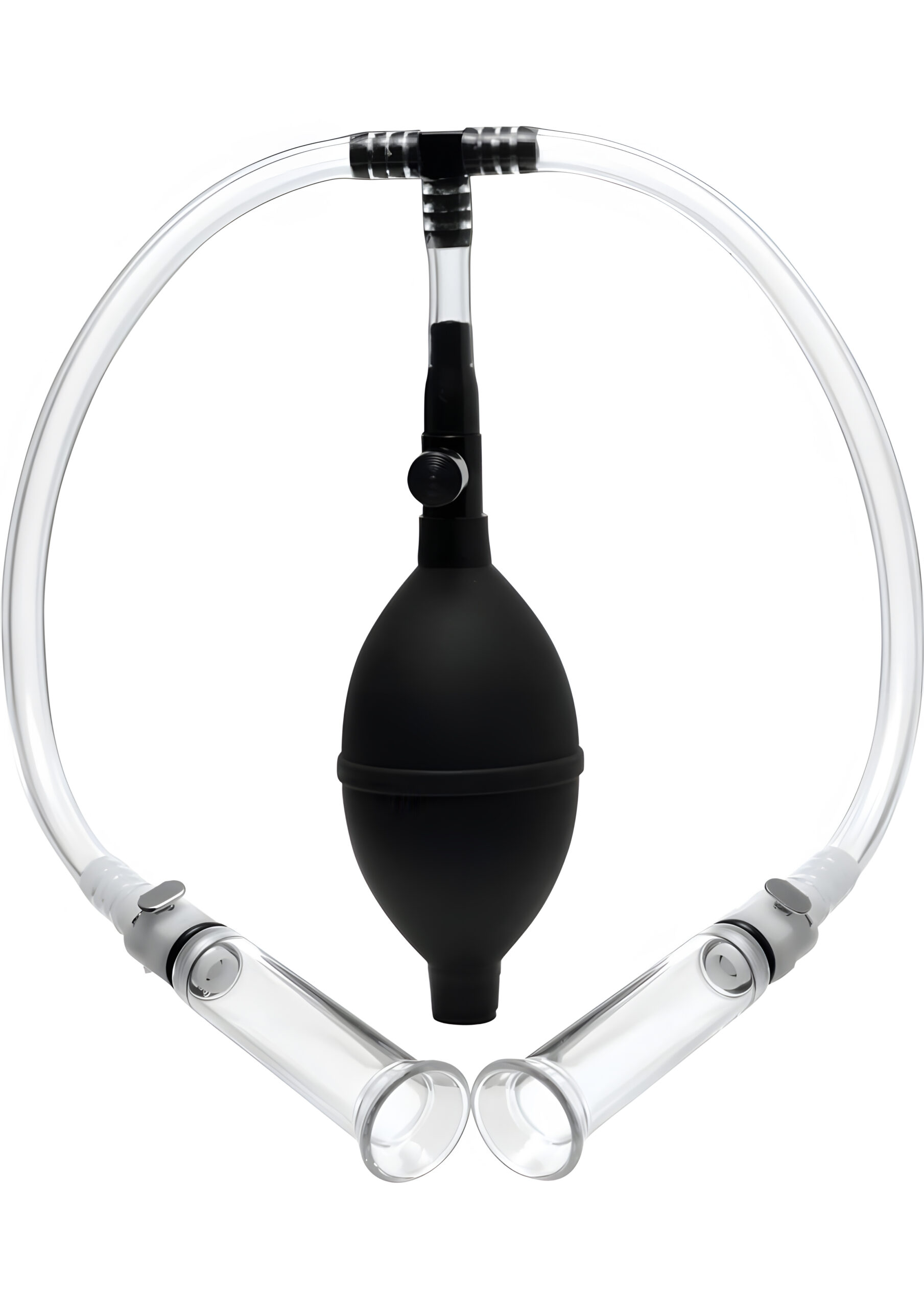 Easy to use with one hand, the Nipple Pumping System features a medical style pump bulb with a quick pressure release valve. Once pumped up, the cylinders can be detached from the tubes and stay in place under suction. Each cylinder is 2.75 inches long and has a inner diameter of .6 inches. The clear connector tubes are 9.5 inches long. Step up your nipple stimulation game with these nipple pumping cylinders and discover how pleasurable they can be. The suction plumps up the nipples engorging them and heightens sensitivity.