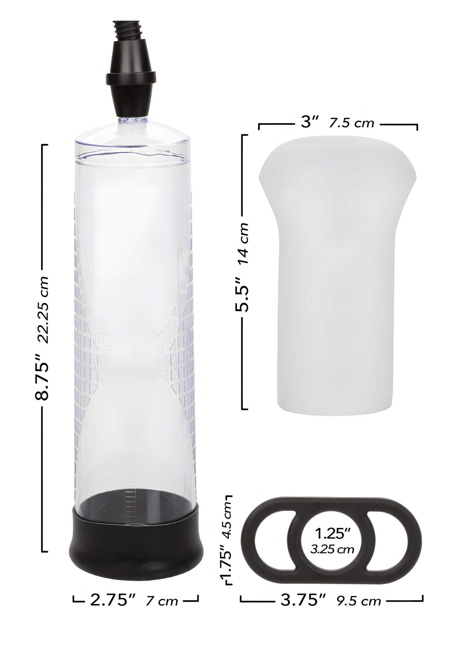 Embark on a journey of unparalleled satisfaction with the Peak Edging Kit, a meticulously crafted ensemble for those seeking to elevate and extend their intimate experiences. This kit is not just a collection of tools; it’s a gateway to a world of enhanced pleasure and confidence. Whether you’re a seasoned explorer or a curious newcomer, the Peak Edging Kit offers something for everyone. The kit includes three essential components: a pump, an enhancer ring, and a stroker. Each piece is thoughtfully designed to work in harmony or stand alone, providing a versatile and comprehensive path to heightened satisfaction. Let’s dive into the details of each component and explore how they can transform your intimate moments. The clear cylinder pump: This is not your average pump. Equipped with incremental measurements, it allows you to monitor your progress and achievements with precision. It’s like having a personal trainer, but for your intimate adventures. The pump features a flexible, non-crimping air hose with a quick-release valve, ensuring ease of use and optimal control. The easy-squeeze bulb makes operation effortless, turning the process into an enjoyable and effective experience. And when it’s time for a cleanup, the pump disassembles easily, making maintenance a breeze. The tapered silicone donut: This snug and comfortable fit enhances the pumping experience, ensuring both efficiency and pleasure. It’s like a cozy sweater for your pump, but way more exciting. The Pure Skin® frosted stroker: With its multi-textured chamber, this stroker is designed to deliver a variety of sensations. It’s like a rollercoaster for your senses, minus the long lines and overpriced snacks. The stroker is crafted from TPE, offering a realistic feel that enhances every moment. The liquid silicone enhancer ring: Soft, stretchy, yet durable, this ring provides an additional layer of sensation and endurance. It’s like a trusty sidekick, always there to support you in your quest for pleasure. Now, let’s talk about the materials. The Peak™ Edging Kit is crafted from high-quality materials, ensuring durability and safety. The cylinder is made from ABS, the bulb, donut, and ring are crafted from silicone, the hose is PVC, and the stroker is TPE. This combination of materials ensures that each component is phthalate-free and safe for use. With a sleek black color, the kit is as stylish as it is functional. It comes with a 1-year warranty, offering peace of mind as you explore new heights of pleasure. The measurements are as follows: the pump is 8.75 inches by 2.75 inches, the ring has a diameter of 1.25 inches, the overall ring measures 3.75 inches by 1.75 inches, and the stroker is 5.5 inches by 3 inches. The entire kit weighs 17.5 ounces, making it easy to handle and store. So, how do you make the most of your Peak™ Edging Kit? Here are a few usage suggestions: Start with the pump to enhance your size and sensitivity. Use the incremental measurements to track your progress and set personal goals. Incorporate the enhancer ring to maintain your achievements and prolong your experience. It’s like hitting the pause button on pleasure, allowing you to savor every moment. Use the stroker for a solo session or incorporate it into partner play. Its multi-textured chamber offers a variety of sensations, keeping things exciting and fresh. In conclusion, the Peak™ Edging Kit is an all-encompassing system designed to enhance your intimate experiences. It’s not just about pleasure; it’s about confidence, gratification, and the joy of exploration. So, why wait? Set off on a path of intense satisfaction with the Peak™ Edging Kit and discover a new world of possibilities.