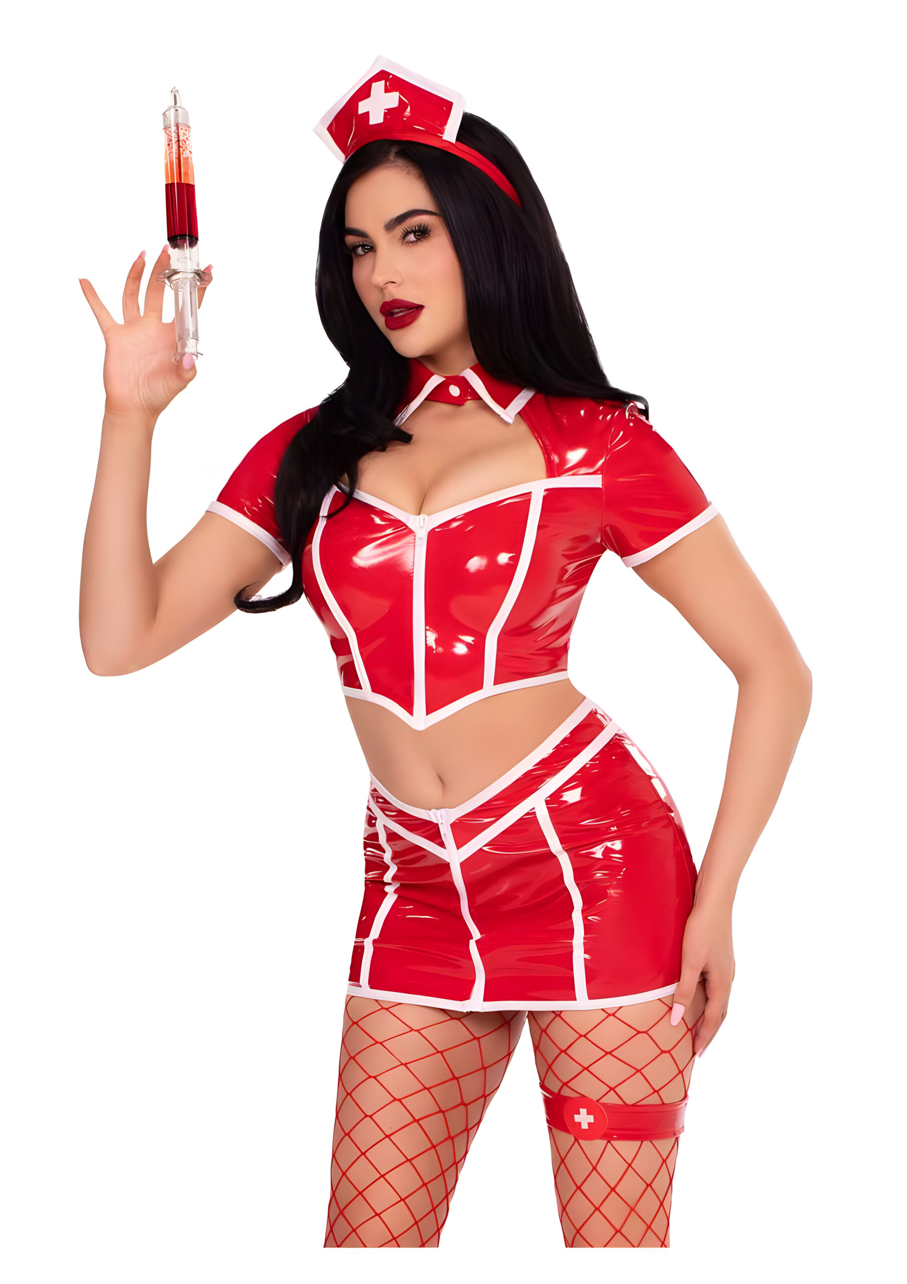 Ready for a pulse check? The 4 PC Red Alert Nurse costume by Leg Avenue takes the classic uniform and turns it into a full-blown fantasy. With a glossy vinyl crop top, curve-skimming V-front skirt, matching garter, and nurse headband, this naughty look is made to command attention. Whether you’re playing dress-up or heating up the party, this sexy costume is one of our top hot costumes—and a total knockout in our women’s Halloween costumes lineup. Tights sold separately. Package Includes: top, skirt, garter, headband Fit & Style: Ultra-fitted vinyl with flirty cuts and bold detailing makes this uniform-inspired look one of our most daring women’s Halloween costumes. Occasion: Perfect for costume parties, roleplay, or bedroom theatrics—this look doubles as a showstopping cosplay costume and nightlife favorite. Features: Vinyl shine, curve-flaunting details, and a dangerously flirty vibe make this a no-prescription-needed sexy Halloween costume. Complete the Look: Add the tights or a syringe prop to complete your shift in one of the most unforgettable sexy Halloween costumes out there. Materials / Care: Hand wash cold, do not bleach, drip dry, do not iron. Fishnet tights and syringe not included. Are you ready to take your Halloween costume game to the next level? The 4 PC Red Alert Nurse costume by Leg Avenue is here to help you do just that. This costume is not just a simple outfit; it’s an experience. With its glossy vinyl crop top and curve-skimming V-front skirt, you’ll be turning heads and raising heart rates wherever you go. The matching garter and nurse headband complete the look, ensuring that you’re the center of attention at any event. This costume is designed with an ultra-fitted style that hugs your curves in all the right places. The flirty cuts and bold detailing make it one of the most daring options in our women’s Halloween costumes lineup. Whether you’re attending a costume party, engaging in some playful roleplay, or simply looking to spice up your nightlife, this costume is a versatile choice that won’t disappoint. The vinyl shine and curve-flaunting details give this costume a dangerously flirty vibe. It’s a look that doesn’t require a prescription to enjoy, and it’s sure to leave a lasting impression. To complete the ensemble, consider adding a pair of fishnet tights or a syringe prop. These accessories will enhance the overall effect and ensure that your costume is truly unforgettable. When it comes to care, this costume is as low-maintenance as it is eye-catching. Simply hand wash it in cold water, avoid bleach, and let it drip dry. There’s no need to iron, so you can focus on having fun instead of worrying about wrinkles. In summary, the 4 PC Red Alert Nurse costume by Leg Avenue is a must-have for anyone looking to make a bold statement this Halloween. With its combination of style, versatility, and a touch of humor, it’s a costume that’s sure to be a hit. So why wait? Get ready to command attention and make this Halloween one to remember.