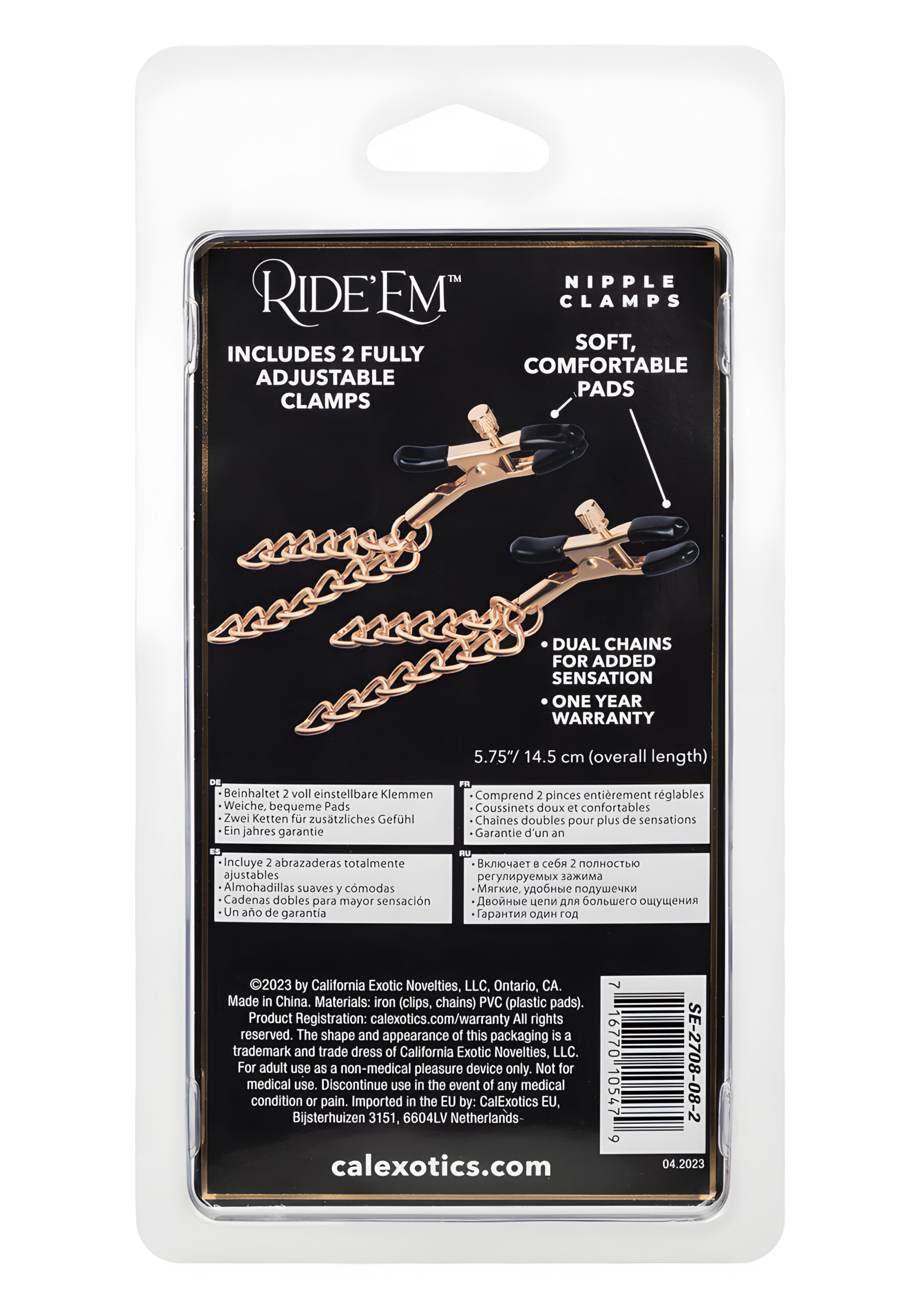 Introducing the Ride ’em Premium Denim Collection Nipple Clamps, a delightful fusion of style and pleasure designed to elevate your intimate moments. This exquisite set includes two fully adjustable clamps, offering a range of sensations and possibilities that will leave you yearning for more. The clamps are thoughtfully designed with soft and comfortable pads, providing a gentle yet firm grip on the nipples. This enhances sensitivity and creates a pleasurable experience that is both thrilling and satisfying. The adjustable design allows you to customize the pressure to your preference, ensuring a comfortable fit and maximum enjoyment. Whether you’re a seasoned enthusiast or a curious beginner, these nipple clamps are perfect for exploring new levels of excitement. Adding an extra layer of sensation, each clamp features dual chains that create a subtle tugging effect with every movement. This sensation can heighten arousal and intensify the overall experience, making these nipple clamps a thrilling addition to your playtime. Imagine the gentle pull of the chains as you move, each tug sending delightful shivers down your spine. It’s like having a personal symphony of pleasure, conducted by your every motion. Crafted with your safety in mind, these nipple clamps are nickel-free, ensuring that even those with sensitive skin can indulge without worry. The materials used are of the highest quality, with iron clips and chains providing durability, while the PVC pads offer comfort and safety. The overall length of 5.75 inches (14.5 cm) ensures a perfect fit for most users, while the lightweight design, weighing just 1.6 ounces, makes them easy to wear for extended periods. Now, let’s talk about the aesthetics. The Ride ’em Premium Denim Collection Nipple Clamps come in a stunning gold color, adding a touch of elegance and sophistication to your intimate accessories. It’s like wearing a piece of jewelry that only you and your partner know about, a secret that adds to the allure and excitement of your private moments. These nipple clamps are not just about pleasure; they’re about style and confidence. Imagine slipping them on and feeling an instant boost in your self-assurance, knowing that you’re wearing something that is both beautiful and functional. It’s like having a little secret weapon in your intimate arsenal, ready to unleash whenever the mood strikes. And let’s not forget the practical side of things. The Ride ’em Premium Denim Collection Nipple Clamps come with a 1-year warranty, giving you peace of mind and assurance in your purchase. They’re also phthalate-free, ensuring that you’re using a product that is safe for your body and the environment. So, how do you use these delightful clamps? It’s simple. Start by adjusting the clamps to your desired pressure level. You can begin with a gentle grip and gradually increase the pressure as you become more comfortable. The dual chains will naturally create a tugging sensation as you move, adding to the overall experience. Experiment with different movements and positions to discover what feels best for you. In conclusion, the Ride ’em Premium Denim Collection Nipple Clamps are a stylish and sensual accessory that promises to enhance your intimate moments. With their adjustable design, comfortable pads, and elegant gold finish, they’re the perfect addition to any collection. So why not indulge in a little luxury and explore new levels of excitement and stimulation? Let your desires take the reins and enjoy the thrill of these exquisite nipple clamps. SKU: SE-2708-08-2 Color: Gold Warranty: 1 Year Warranty Features: Wearable, Phthalate Free, Adjustable Material Type: Iron (clips, chains) PVC (pads) Measurements: 5.75 in/14.5 cm (overall) Weight: 1.6 oz