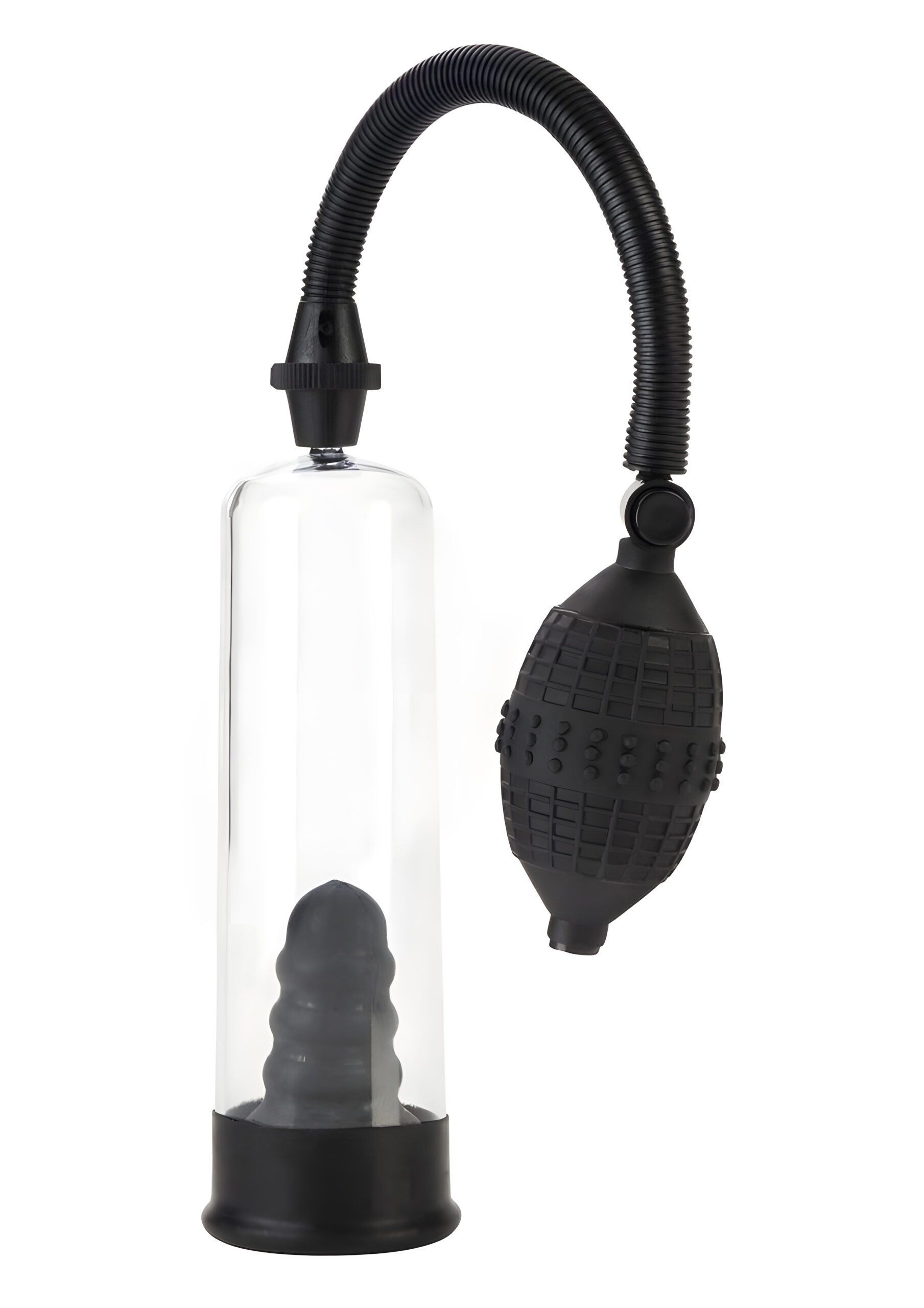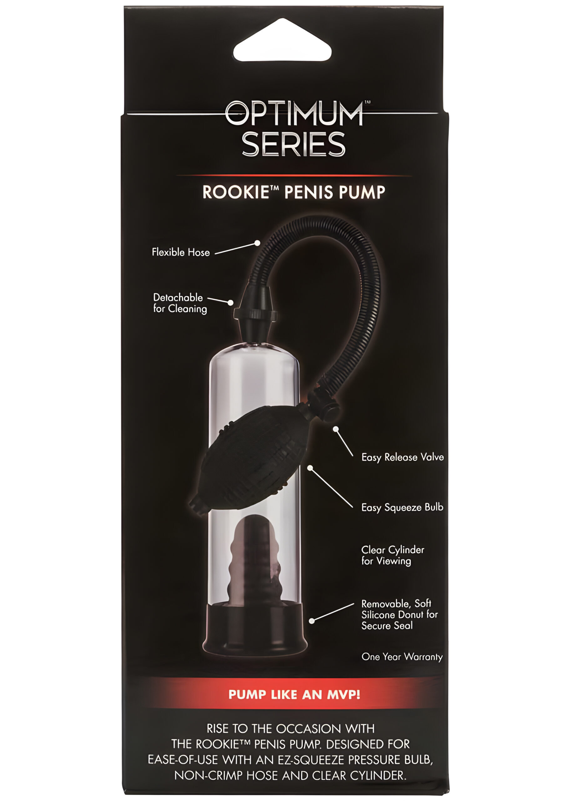 Rise to the occasion with the Rookie Penis Pump! Superior suction, wonderful comfort, and an easy-to-use system will have you pumping like an MVP in no time. This pump is a penis enhancement pump designed to give you fast results. It uses a vacuum-seal system to create an airtight seal around your penis, increase pressure, and maximize blood flow. Over time, using the pump helps you maximize your size and optimize your pleasure for better erections and an enhanced love life. The flanged, clear cylinder was created to provide you with ultimate comfort and an amazing view of your growing erection. The tapered rubber sleeve at the base of the cylinder wraps your penis in comfort and provides additional stimulation while you pump. Our superior suction system creates an airtight seal to give you the fastest and most effective results. The pump’s flexible, non-crimping hose makes pumping in all of your favorite positions easy. The hose is detachable to make cleaning after your pumping sessions effortless. This pump features an EZ squeeze pressure bulb, so you can increase the suction on your penis with a simple squeeze. When you’re finished pumping, a quick release valve releases the pressure immediately. Your new pump is ready to accommodate your harder, longer, and thicker erection with 7.5 inches in length and 2.2 inches in width. Reach the next level of erection potential with this pump.
