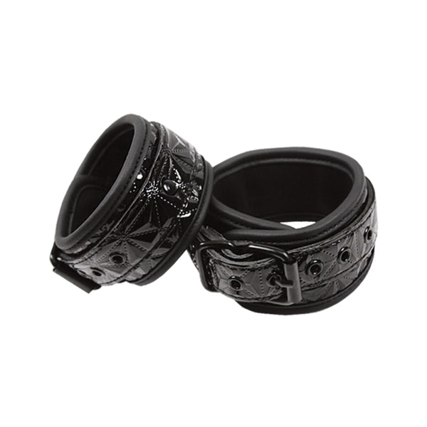 Sinful has been THE name in affordable playful kink in pink. Now, Sinful just made sexy a little bit sexier. is excited to introduce Sinful: Black. Everyone’s favorite collection is now available in a stunning midnight black finish while continuing to deliver the quality you expect. Black, nickel-free anodized hardware, aesthetically striking embossed vinyl, and lined in soft yet durable liquid-play friendly neoprene. This sexually neutral collection includes: fully adjustable wrist cuffs, ankle cuffs and collar & leash featuring quick release hardware, playful vinyl and leather soft bite whip, a full sized paddle with a wrist or hang loop, a comfortable elastic blindfold, and an adjustable breathable ball gag.