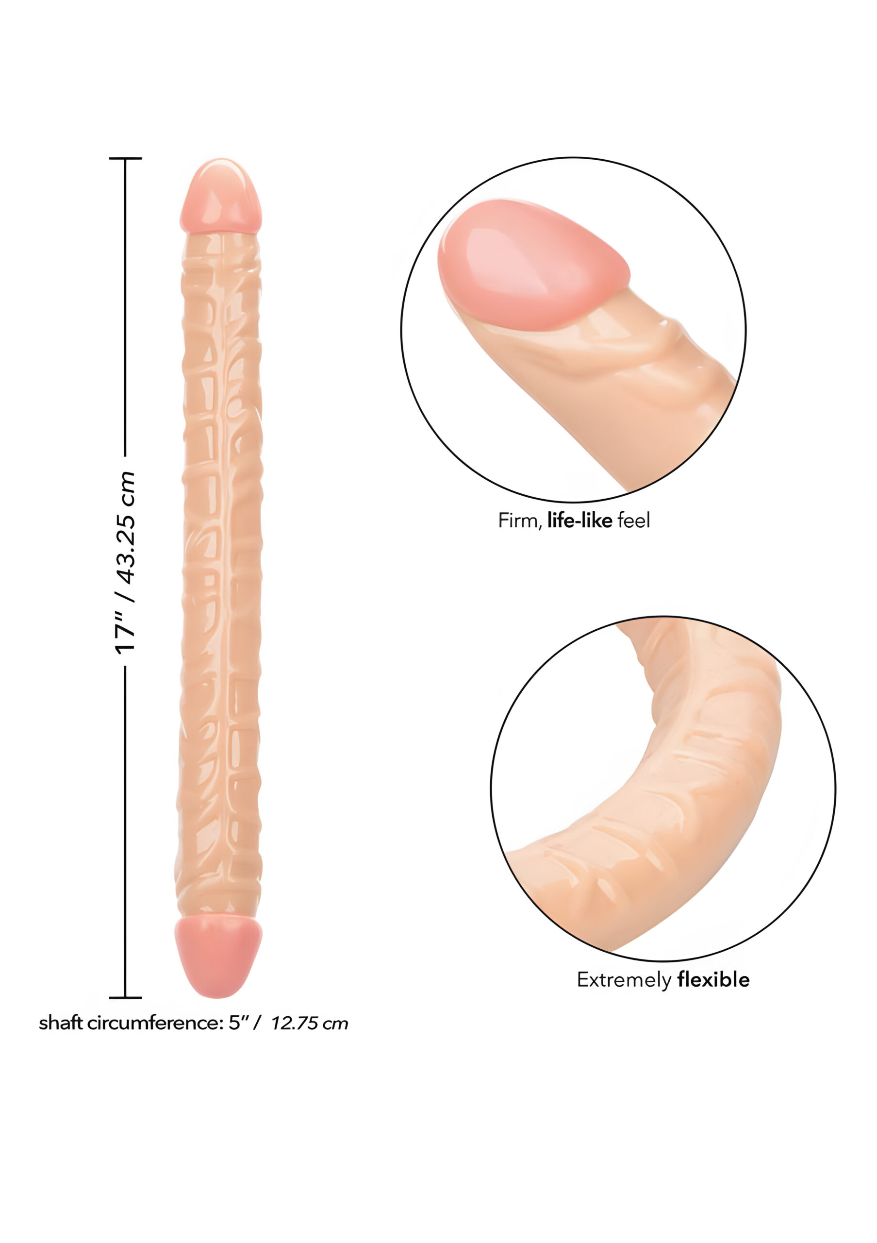 Introducing the Size Queen 17″ Ivory Double Dong – the thrill ride designed to satisfy your wildest dreams. This hefty toy is not for the faint of heart. After all, it’s called the Size Queen for a reason! With its elegant ivory color and formidable 17-inch shaft, it’s sure to please even the most discerning of pleasure seekers. This double-ended delight features two life-like ends designed to mimic the real deal, delivering a sensationally realistic experience. Prepare to enjoy double penetration like never before, as this big, bold dong gives you the royal treatment you’ve been craving. The plump, pliable shaft moves and bends with your body, adjusting to your every curve and whim. Whether it’s solo play or a shared experience, the multi-directional body of the dong allows for various positions and depths, ensuring every encounter is a new adventure. The soft, body-safe material of the Size Queen is just another reason to bow down to this mighty dong. It provides unparalleled comfort even during the most vigorous play, ensuring each ride is as smooth as it is thrilling. Hygiene also plays a starring role with our double dong. Being both phthalate-free and waterproof, this naughty yet noble tool keeps your health and safety in mind. Easily cleaned and maintained, the Size Queen is ever ready for your next journey into the realms of ecstasy. This toy comes with a one-year warranty, serving as a testament to its excellent quality and durability. So, you can indulge in your deepest fantasies with the peace of mind that the Size Queen is built to last. For those looking to explore the thrilling world of double penetration or simply wishing to upgrade their solo sessions, the Size Queen is an excellent choice. Get ready for a thrilling ride that caters to your insatiable appetite for pleasure. Remember, being a ‘size queen’ isn’t just about embracing larger toys—it’s about embracing your own desires and daring to explore new dimensions of pleasure. So why wait? Make your next rendezvous unforgettable with the Size Queen 17″ Ivory Double Dong. Your throne awaits.