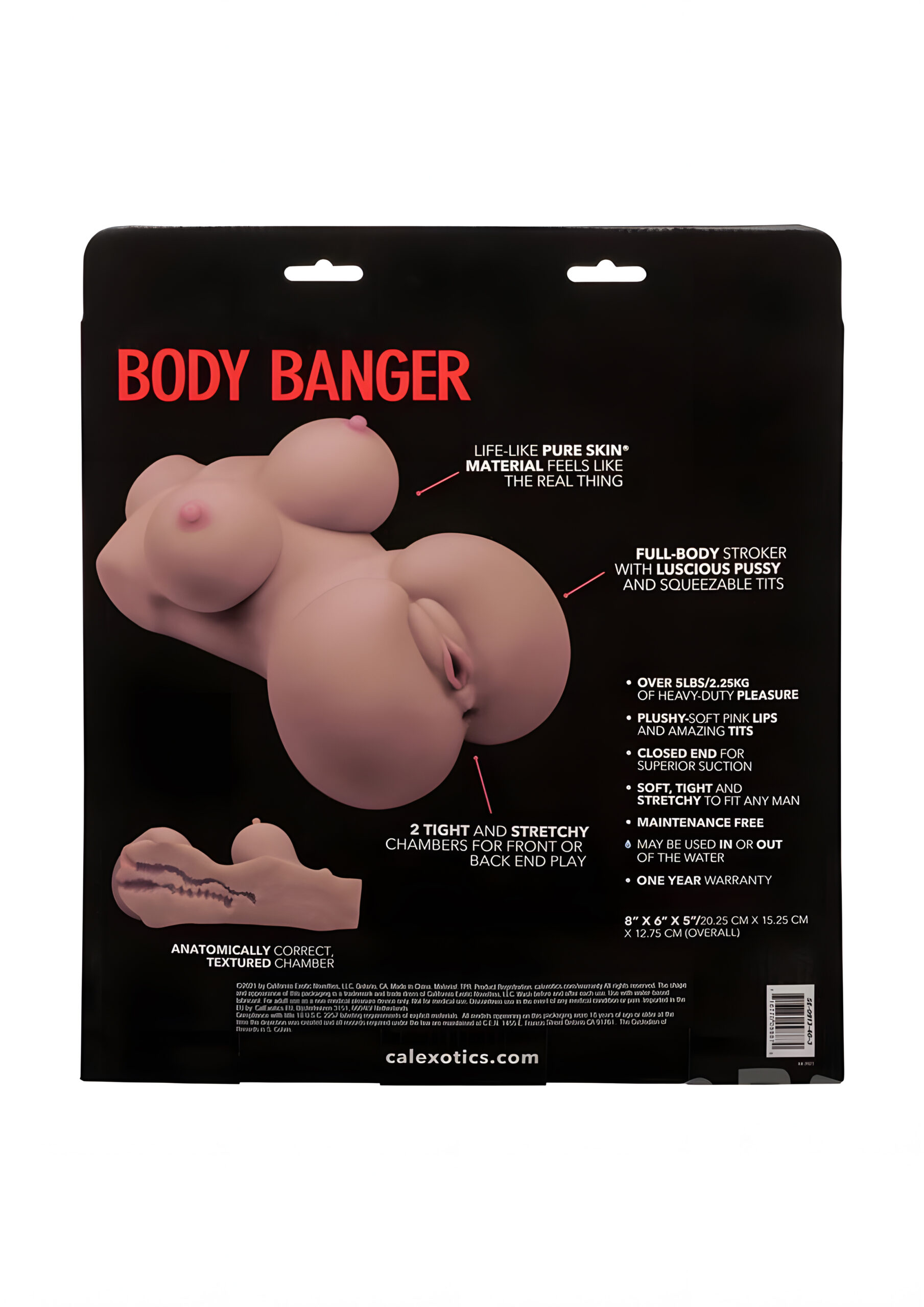 The Stroke It Body Banger in Brown is designed to thrill with a real-feel stroking experience that you won’t be able to resist. Dive deep into over 5 pounds of heavy-duty pleasure with this dual-chamber stroker, complete with full body design and soft squeezable tits. Experience the ultra-tight, anatomically correct chambers, which boast realistic textures for a truly immersive experience. The full body stroker is perfect for those seeking more from their pleasure play, featuring lifelike plush-soft pink lips and amazing bouncy tits. Made from PureSkin Thermoplastic Rubber, this super-soft, ultra-stretchy material delivers a unique, lifelike feel that will leave you craving more. This durable stroker is easy-to-use, easy-to-clean, and requires no special care. To maintain the Body Banger, simply wash the sleeve internally and externally with warm water and soap before and after each use. Disinfect it with a Universal Toy Cleaner for optimal hygiene. Indulge in the Stroke It Body Banger and experience the satisfying, lifelike pleasure you’ve been longing for.