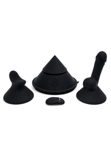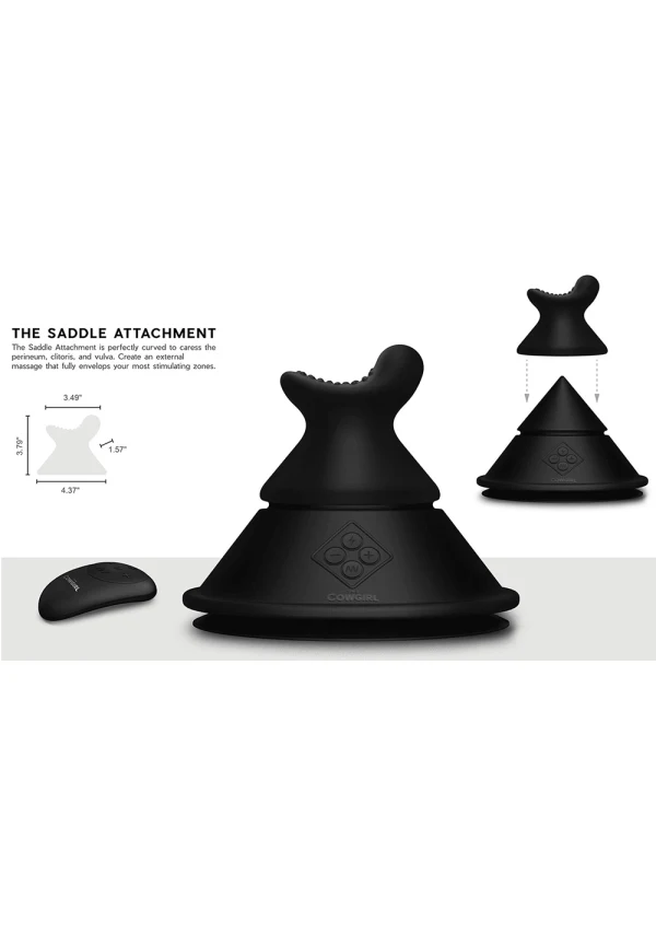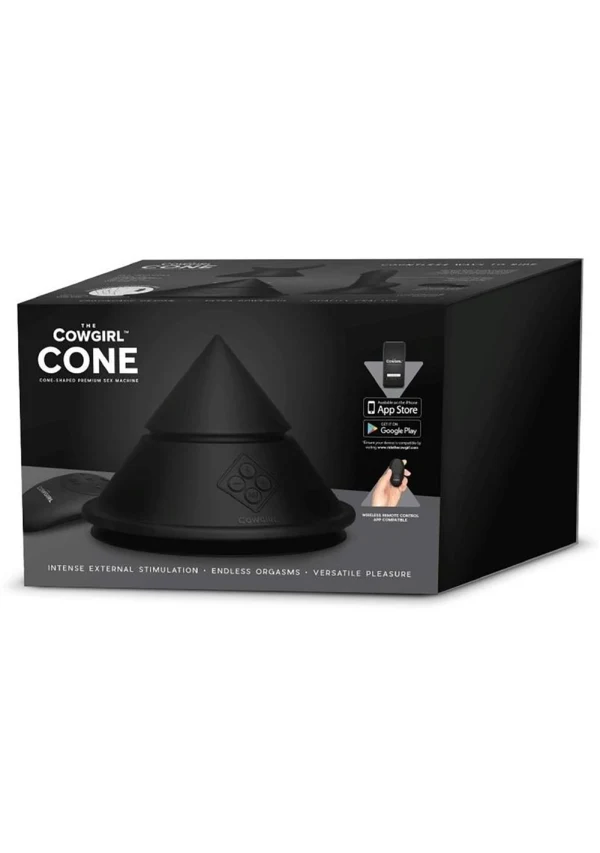 The Cowgirl Cone is an ergonomically designed sit-on, Lay-on, rub, or lean-on external stimulator that provides body-quaking, external stimulation with countless ways to ride at any angle you desire. The ultra-wide suction base affixes to any surface for endless position possibilities and lets you take the reins of your pleasure with the included remote control. Switch between 20 vibration varieties and 10 intensity levels, or use one of the included attachments to elevate your experience.